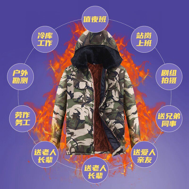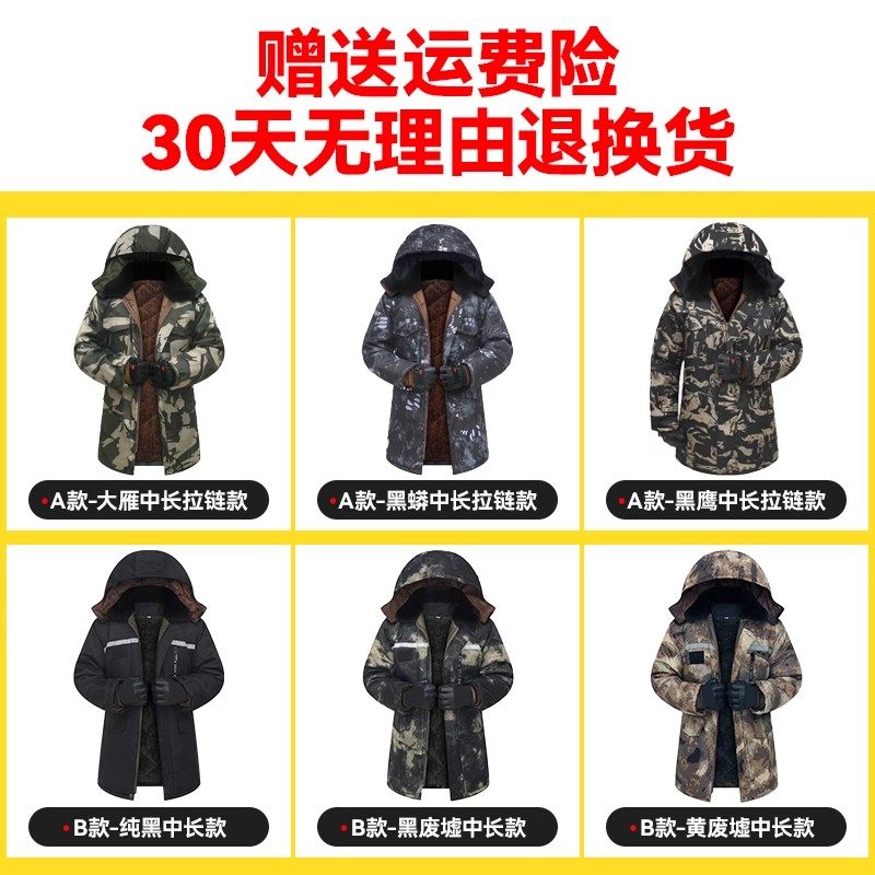 劳保棉袄男军大衣冬季加绒加厚防寒服棉服工作服迷彩棉衣外套内胆