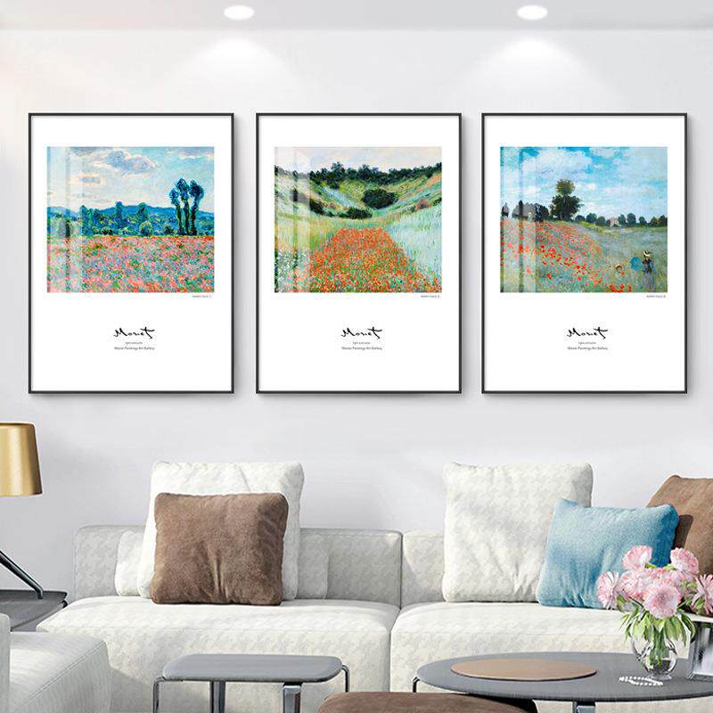 莫奈作品客厅装饰画沙发后面的玄关现代卧室饭厅三联墙画日出印象