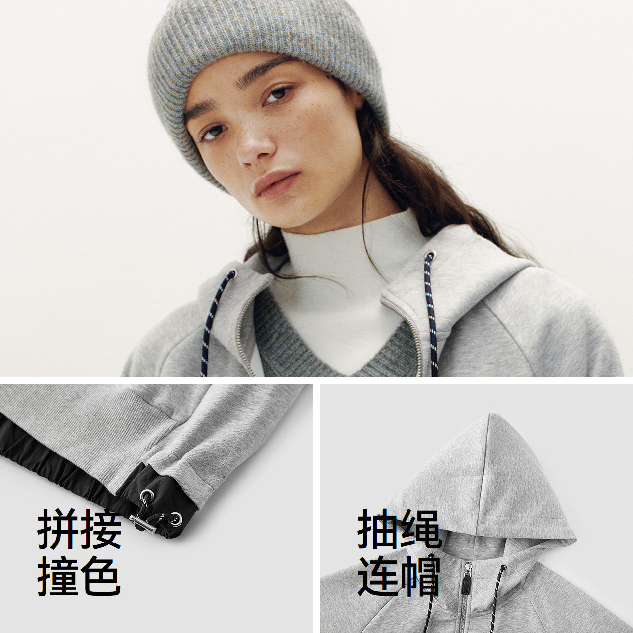 森柔棉|商场同款森马外套女插肩袖连帽2025秋季新款拼色夹克宽松