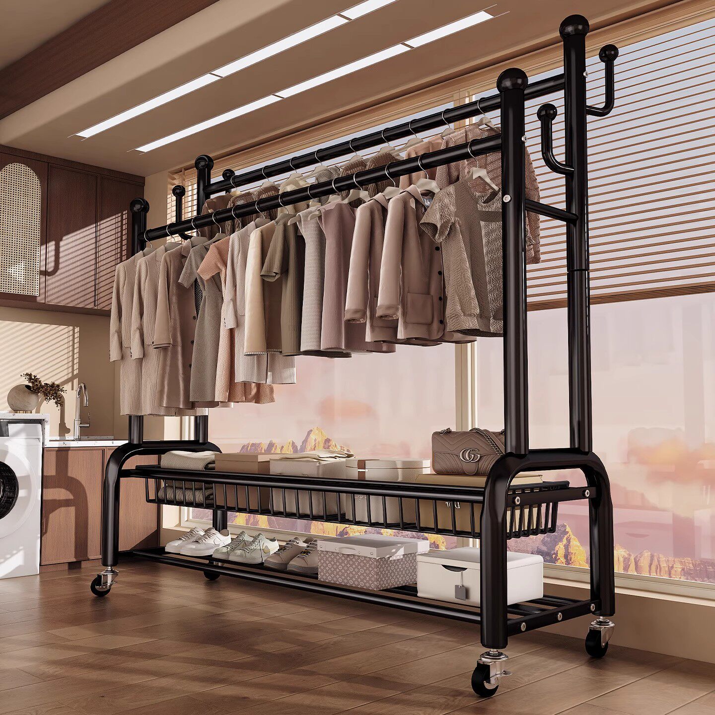 网红可移动挂衣架落地卧室家用室内衣服收纳置物架衣帽架客厅阳台