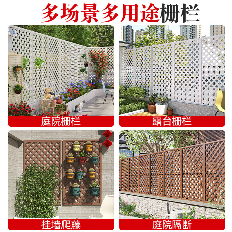 塑木栅栏花园围栏户外白色网格爬藤花架阳台庭院篱笆隔断护栏露台