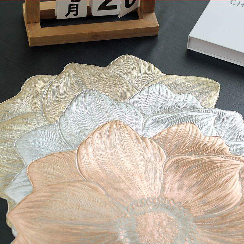 花朵北欧风创意防滑垫装饰垫PVC防烫隔热垫高级荷花餐垫防水防油