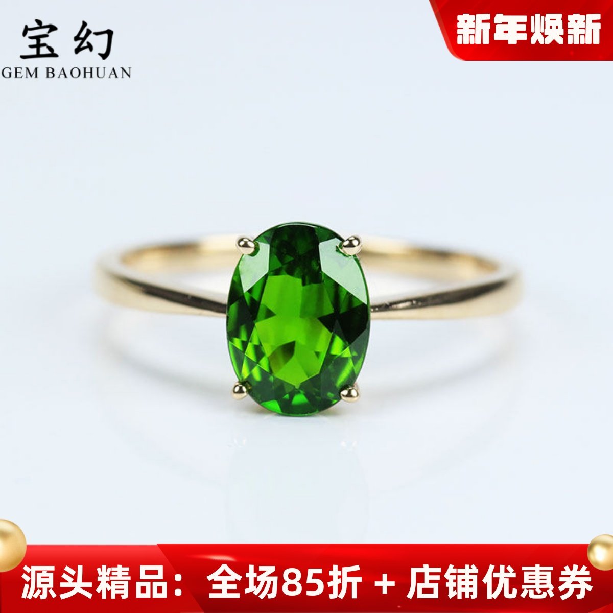 18K玫瑰金5A级天然铬透辉石戒指 祖母绿色宝石女款简约四爪镶送礼