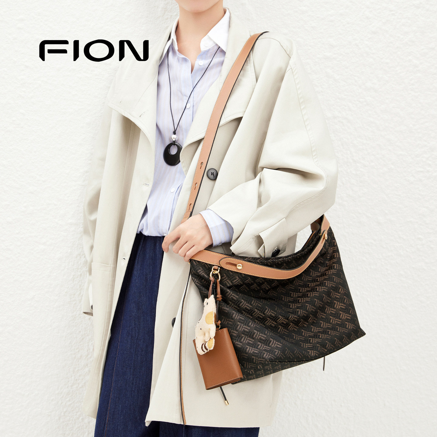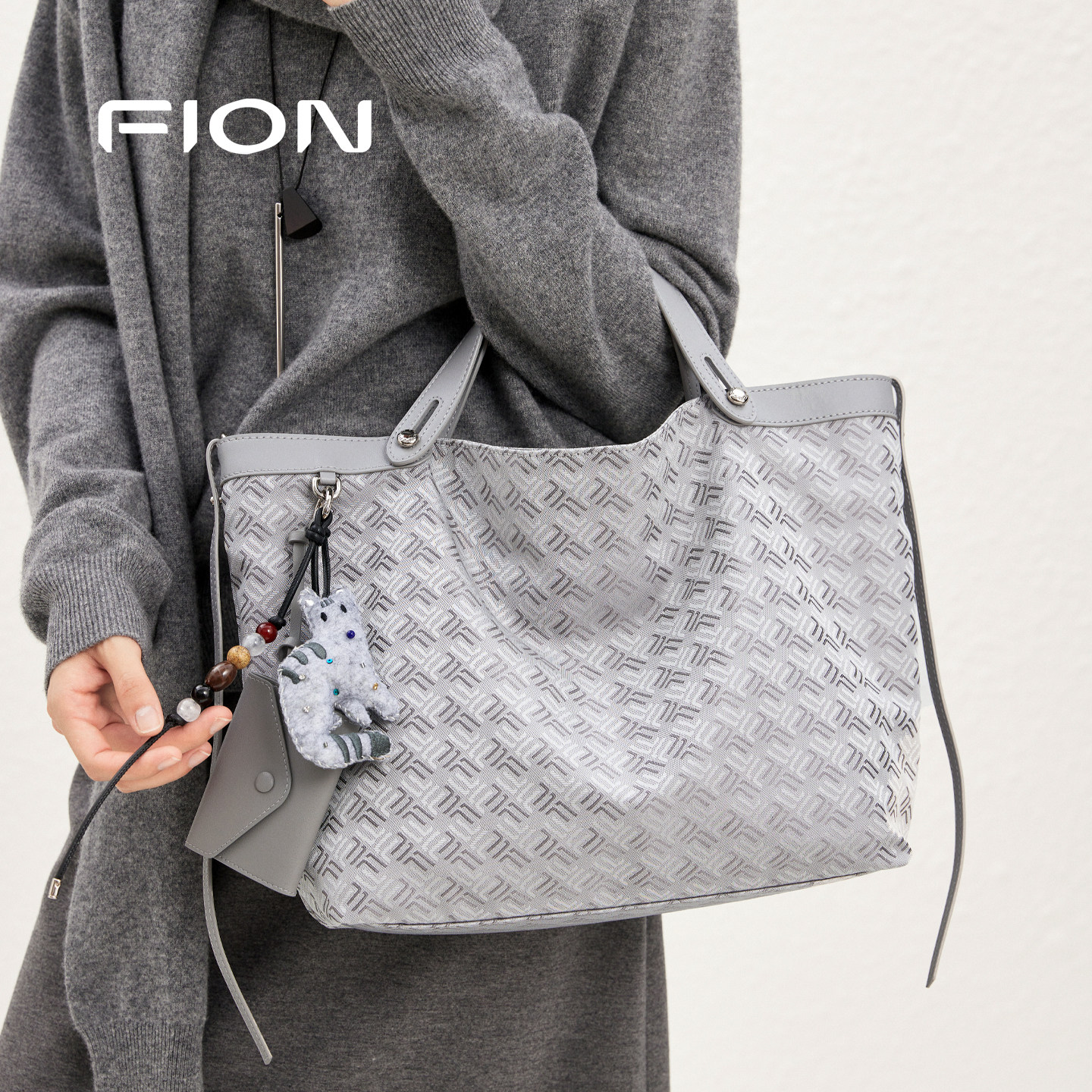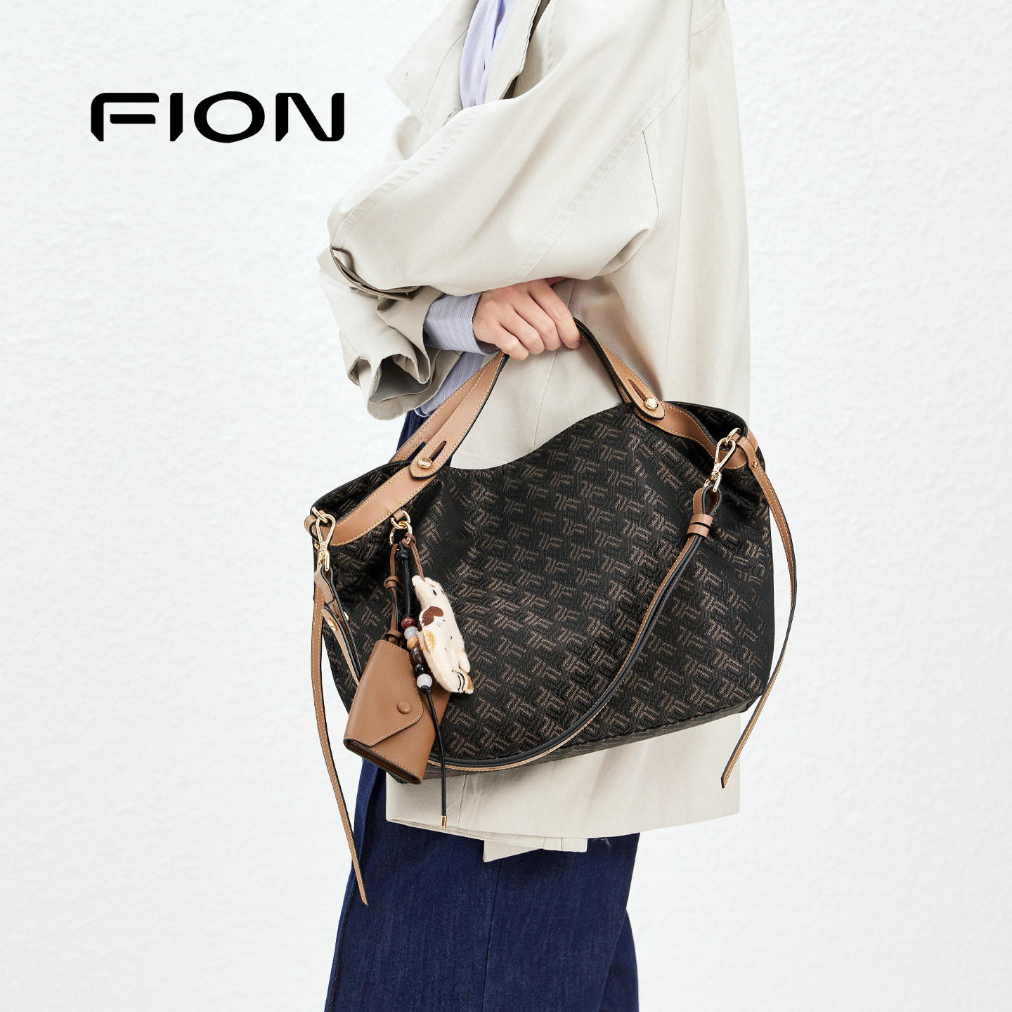 Fion/菲安妮25秋摇摇包手提托特包高级单肩斜挎包包女通勤菜篮子