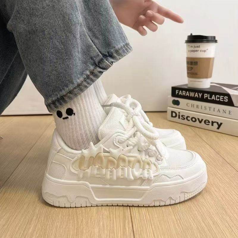 米白色原创小众厚底面包鞋女百搭运动休闲板鞋学生小白鞋2025新款