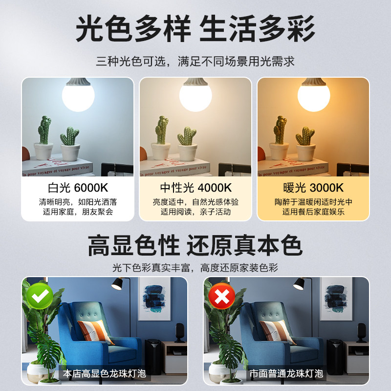 龙珠灯泡led灯三色变光e27螺口节能玻璃暖光圆形球泡吊灯护眼照明