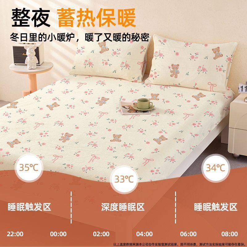 小清新床笠秋冬加厚牛奶绒床罩三件套床褥保护套全包床垫床单枕套