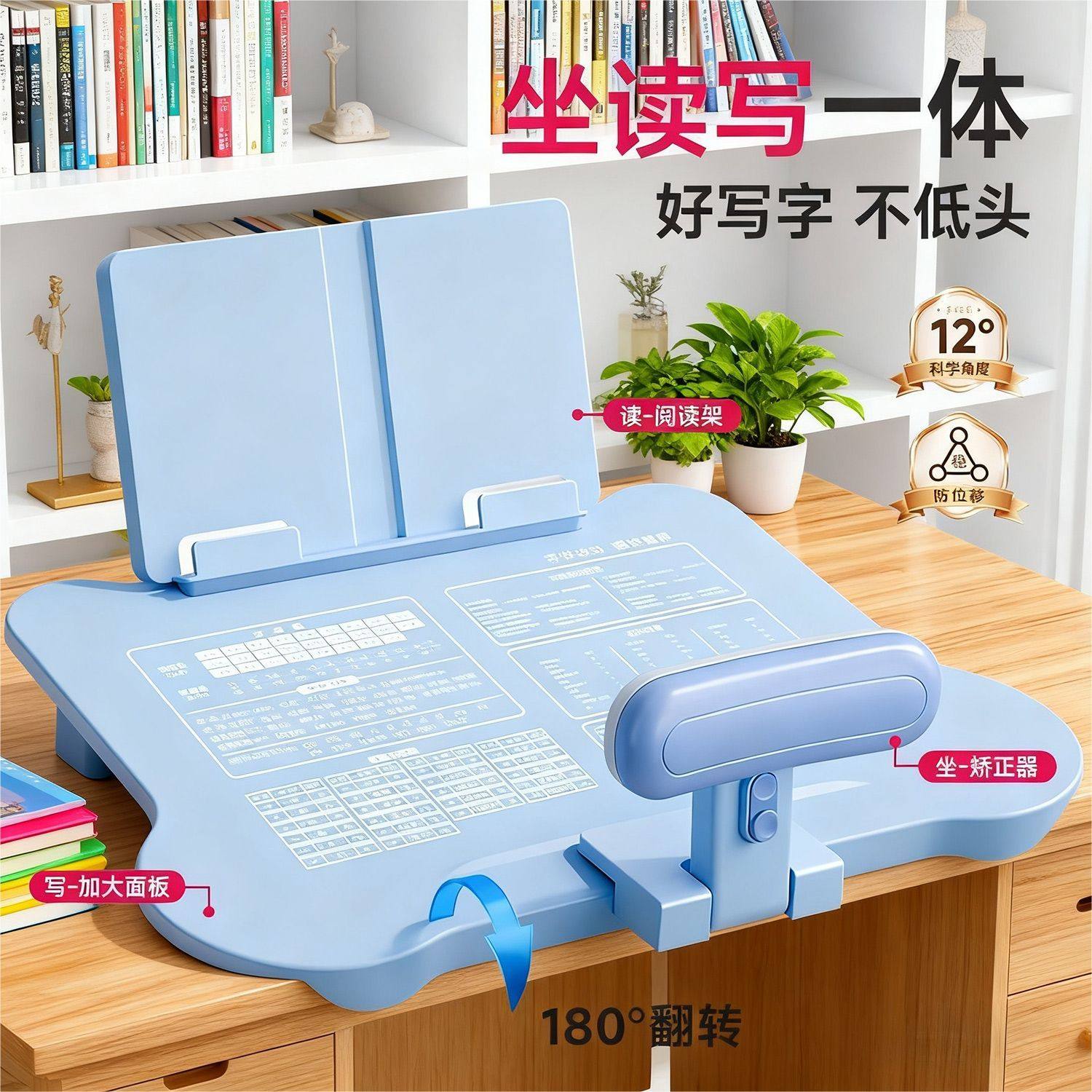儿童坐姿矫正器小学生桌面款可折叠翻转写字姿势纠正神器防低头驼背不挑桌型书写作业学习视力保护支架书桌子