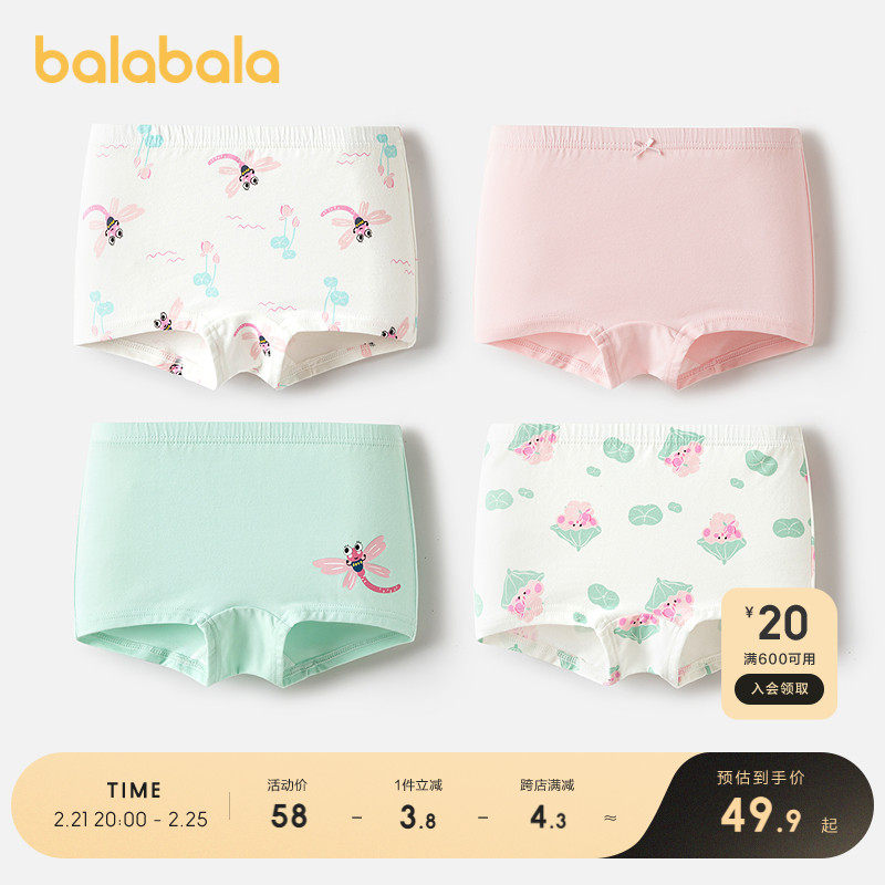 巴拉巴拉女童内裤平角儿童四角短裤抑菌裆亲肤萌宝宝不夹PP四条装
