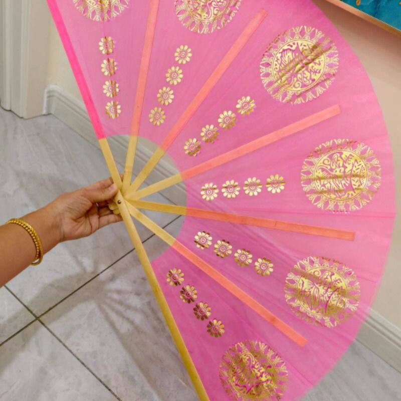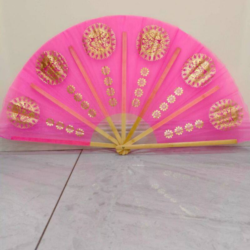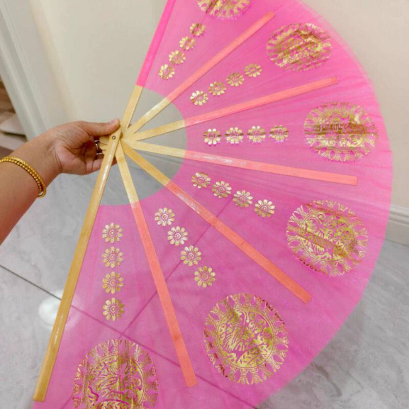 正品朝鲜族舞蹈扇子韩国跳舞扇子13级考级扇道具烫金粉色纱扇子
