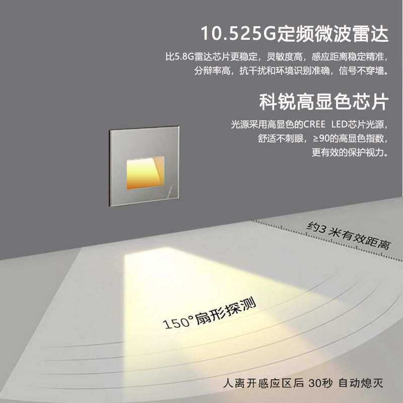 感应灯人走灯灭夜用过道智能小夜灯86型楼梯踏步楼道雷达地脚线灯