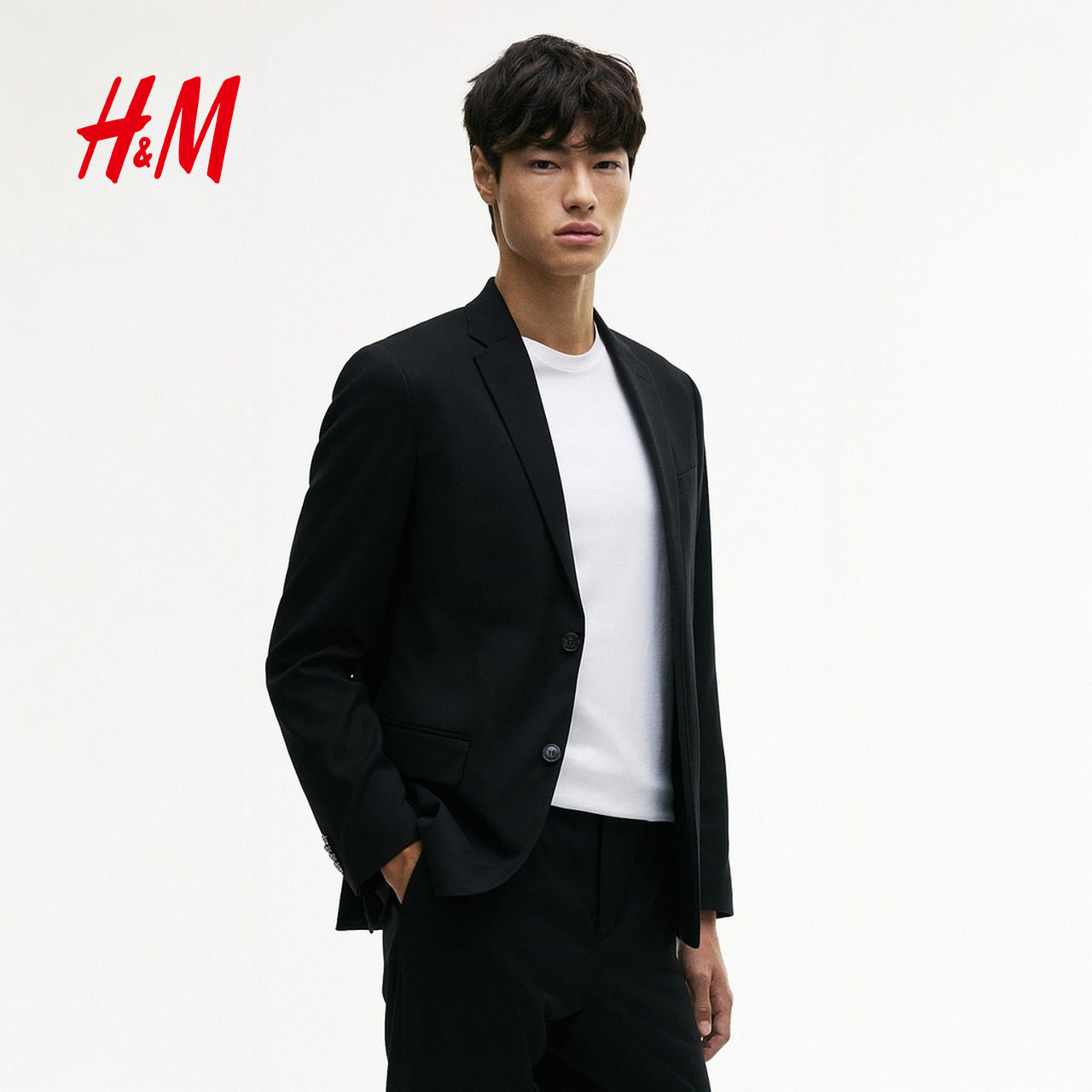 HM男装西装冬季职业通勤法式合身长袖商务正装西服外套1250484