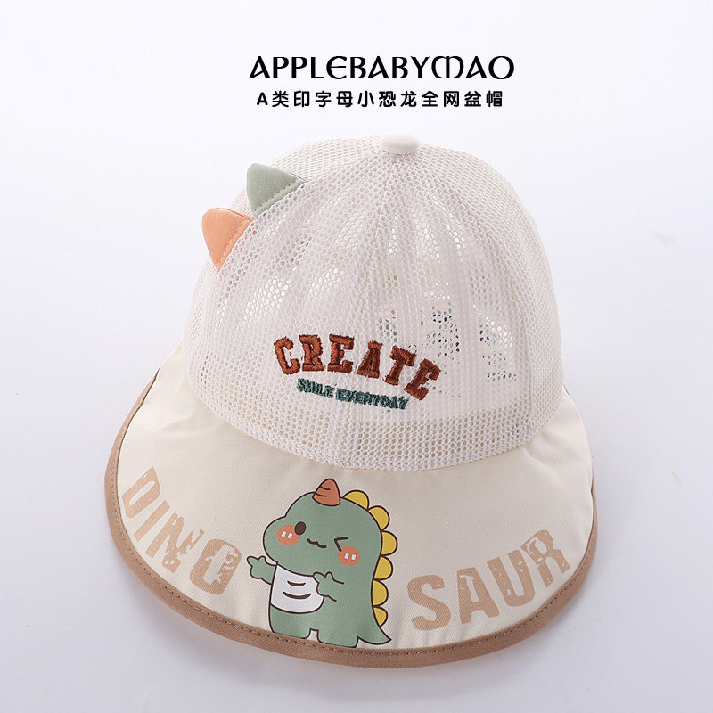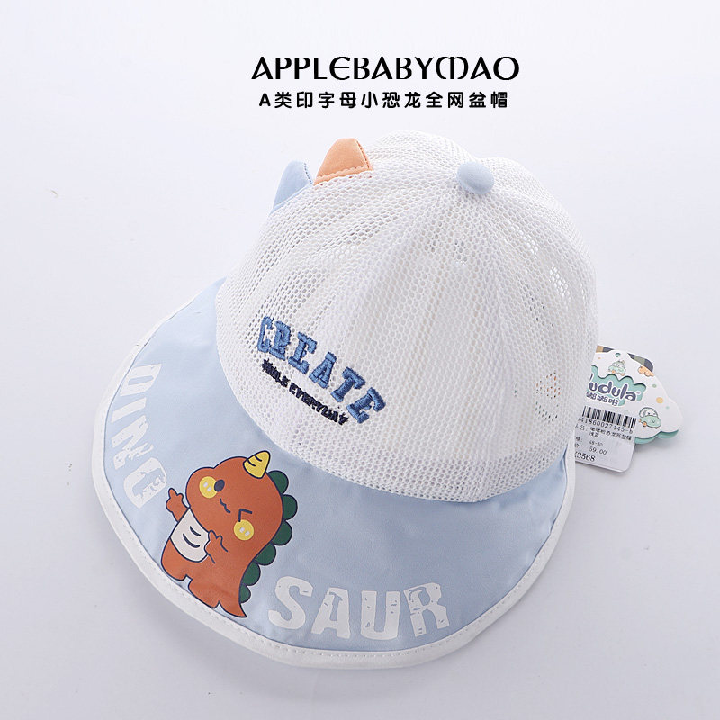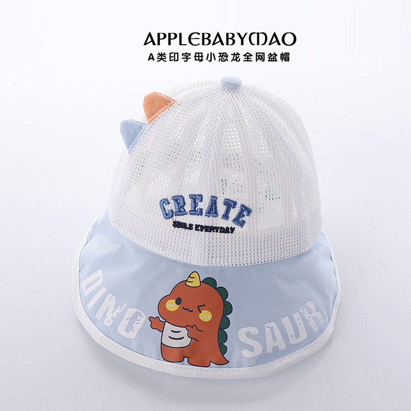 嘟嘟啦夏季男宝宝帽子可爱卡通恐龙外出透气防晒帽大帽檐遮阳凉帽