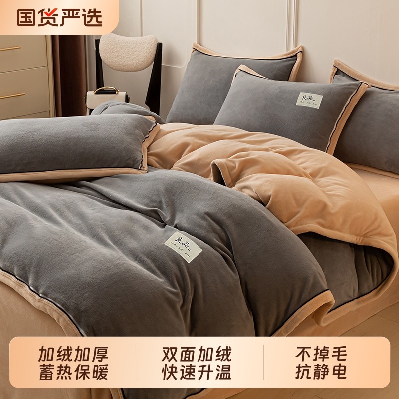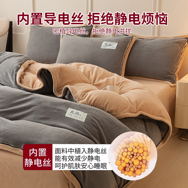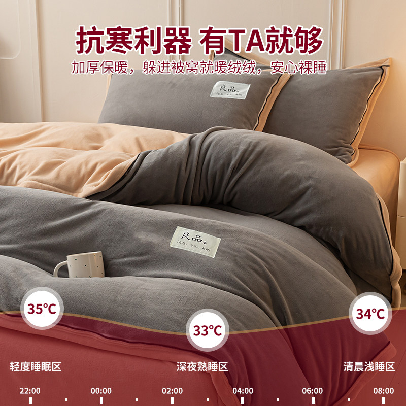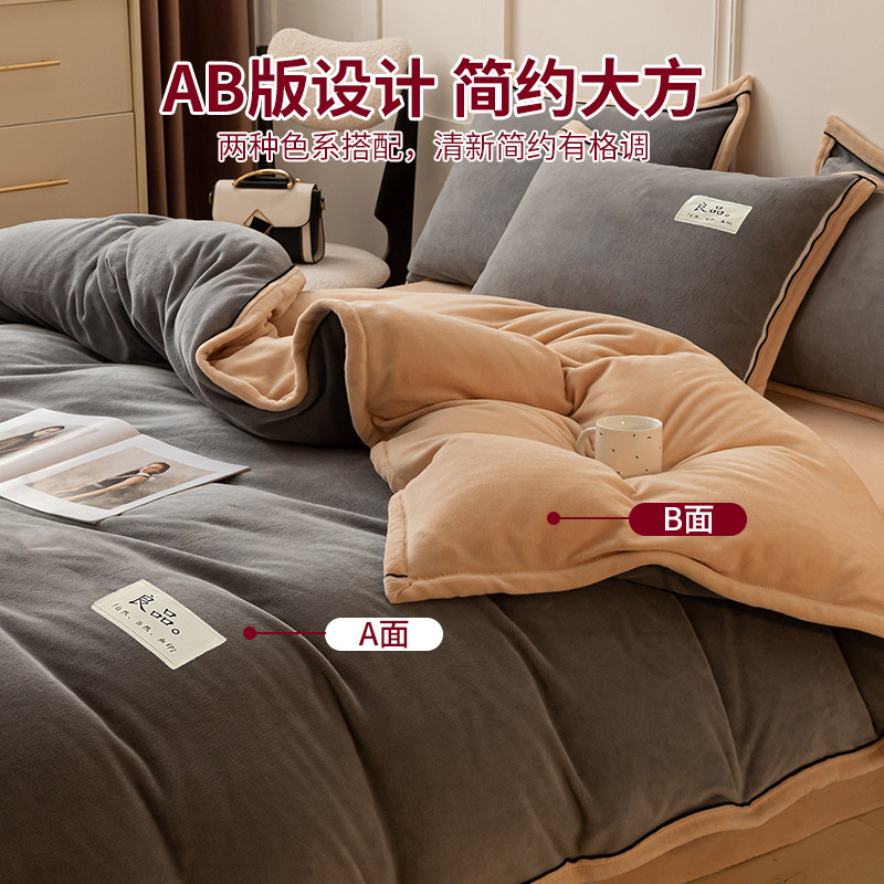 冬季加绒被套单件牛奶绒珊瑚绒宿舍单人单独毛绒被罩1.5米四件套3