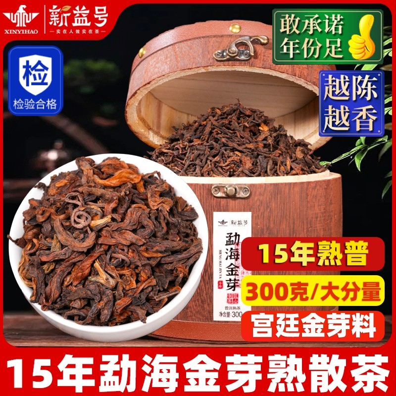云南茶叶勐海宫廷普洱茶熟茶特级金芽散茶陈年古树茶500g木桶装