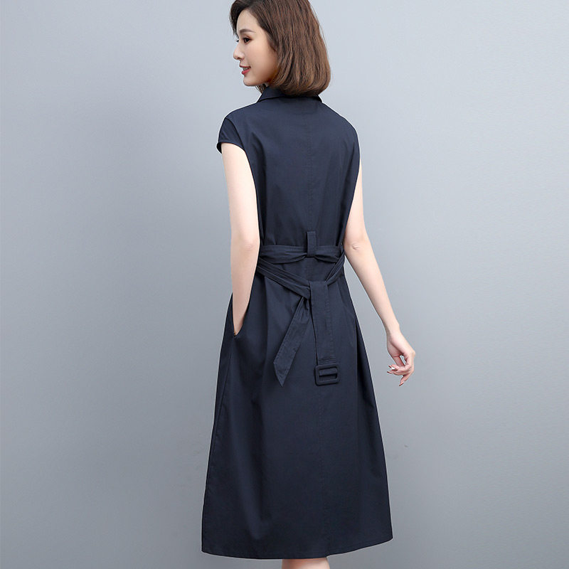 恒源祥连衣裙女装纯棉深色文艺夏装裙子长裙高腰裙纯色新款妈妈装