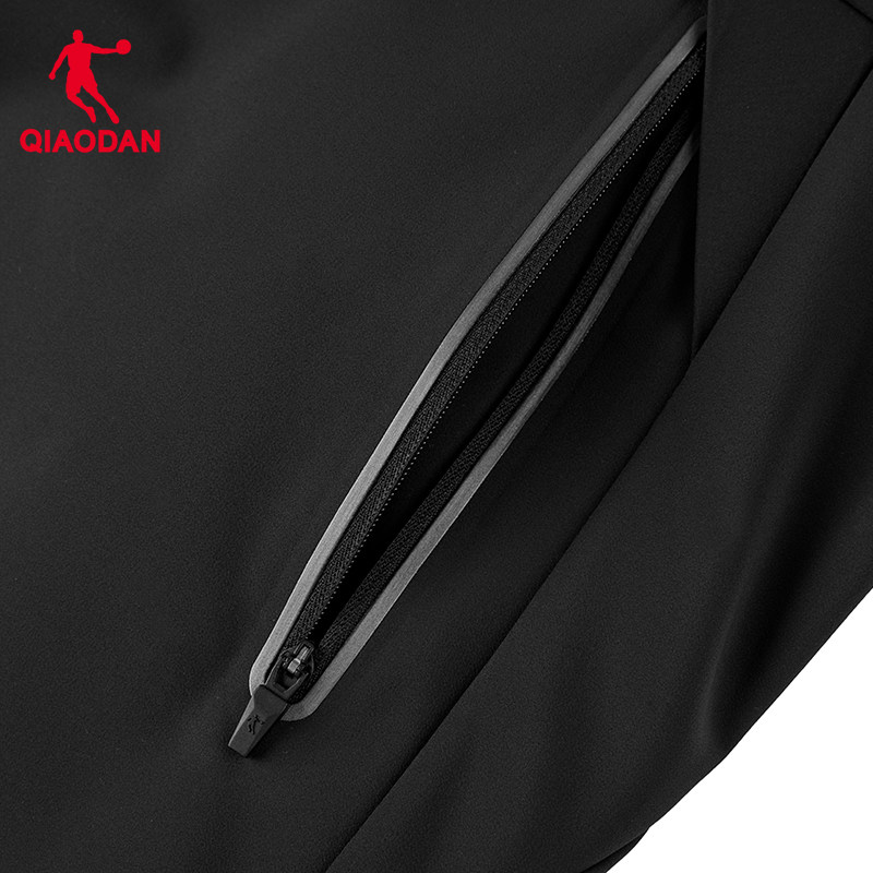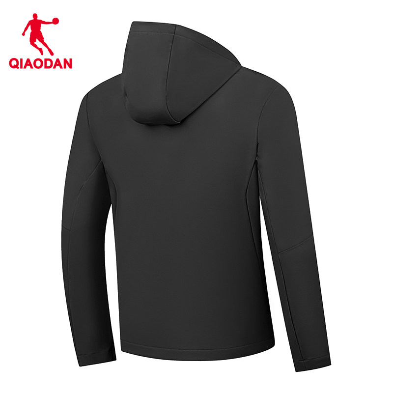 特步防泼水夹克外套男春秋季户外风衣连帽黑色上衣防风运动训练服