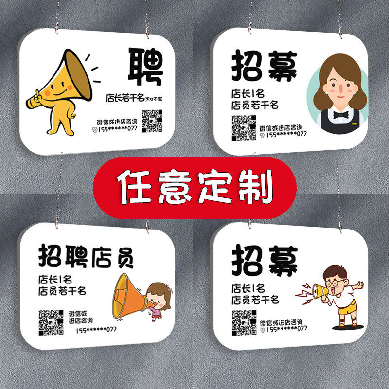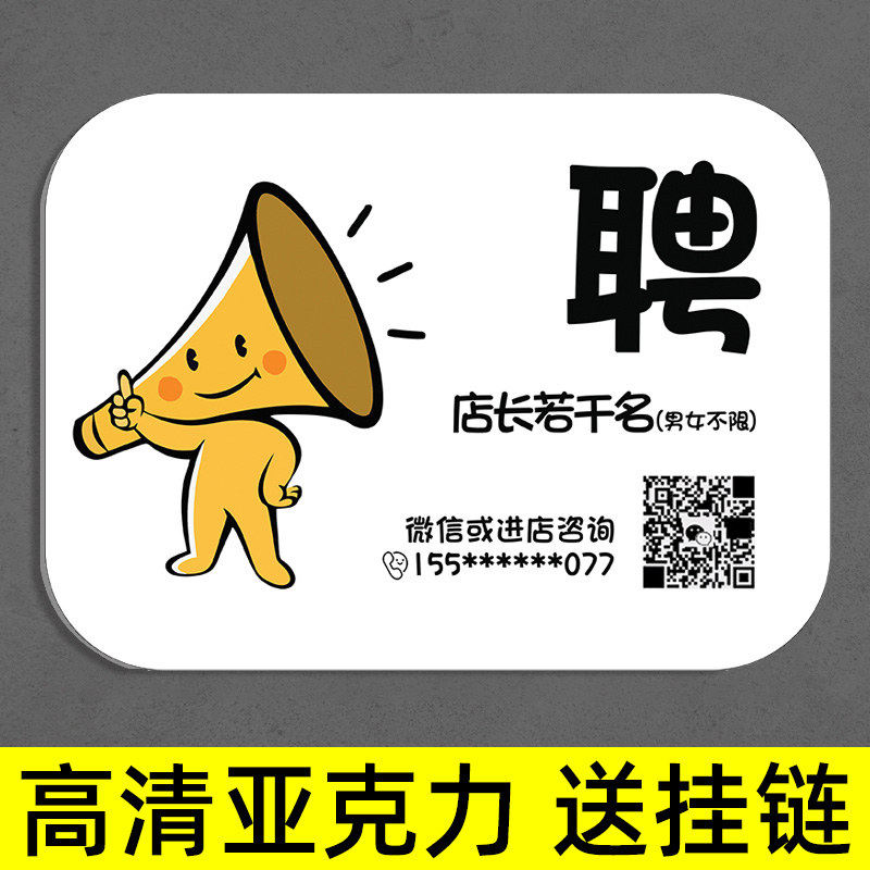 招聘挂牌店铺招工挂牌创意卡通亚克力挂牌贴纸招聘广告牌子餐厅饭店服装店招工服务员导购员广告海报贴提示牌
