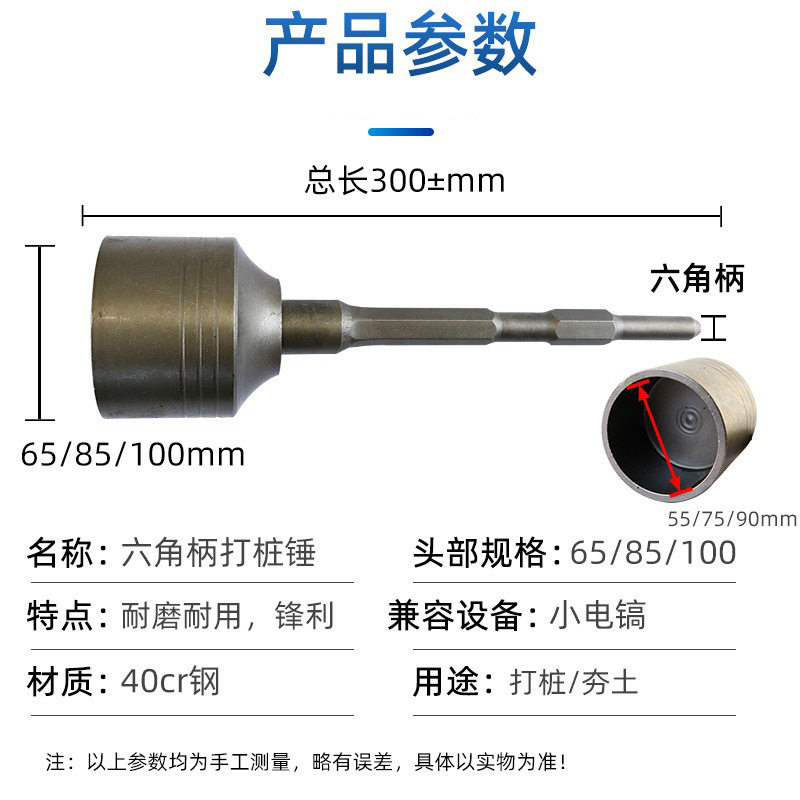 打桩锤头电镐六角柄冲击钻凹槽锤头钢筋圆管膨胀螺丝多功能打桩神