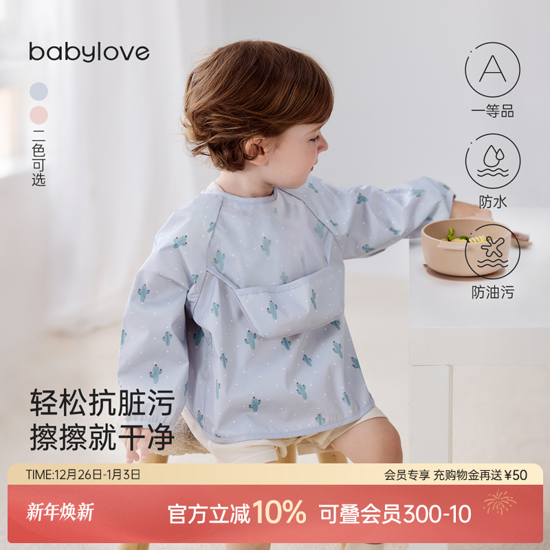 babylove婴幼儿长袖反穿衣宝宝吃饭罩衣防污防水围兜儿童可爱饭兜