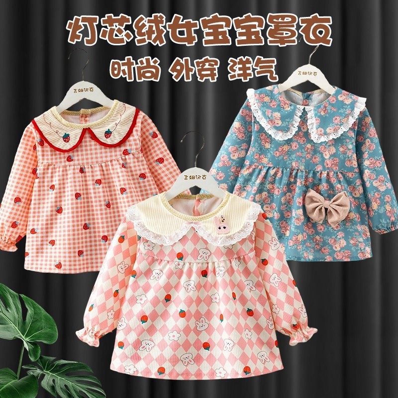 罩衣女宝宝儿童围兜防脏灯芯绒围裙秋冬季洋气外穿公主裙公主风