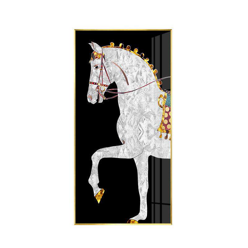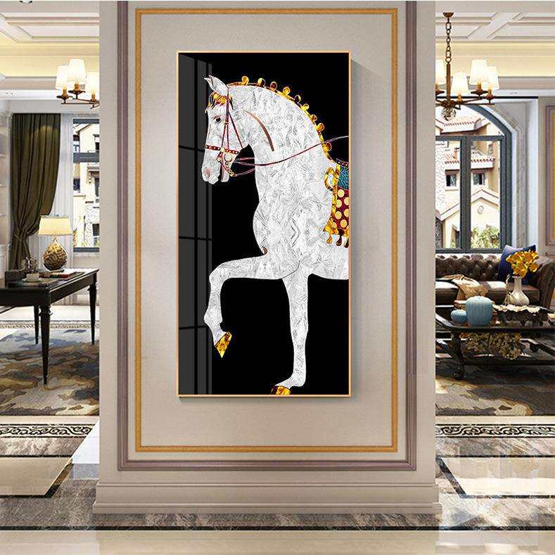 轻奢后现代简约电视柜玄关走廊过道竖版挂画高档别墅马轻奢装饰画