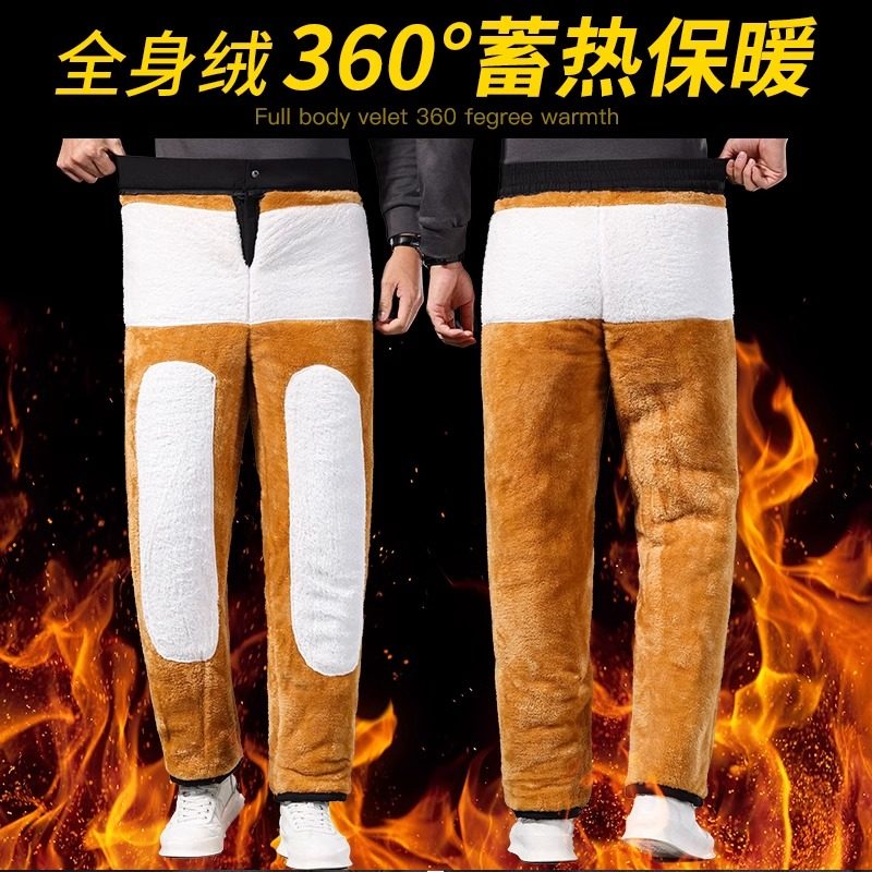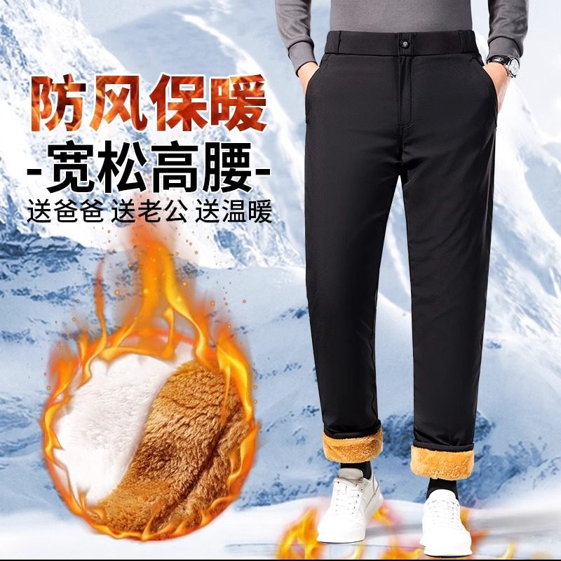 加绒巨厚冬季棉裤外穿直筒保暖裤中老年人男士休闲裤子冬装防风
