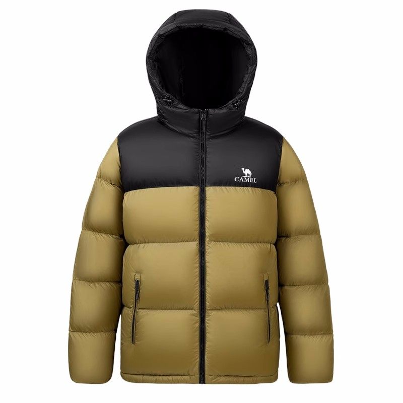 骆驼男装秋冬黑色加厚保暖鸭绒短款面包服男女同款防水羽绒服外套