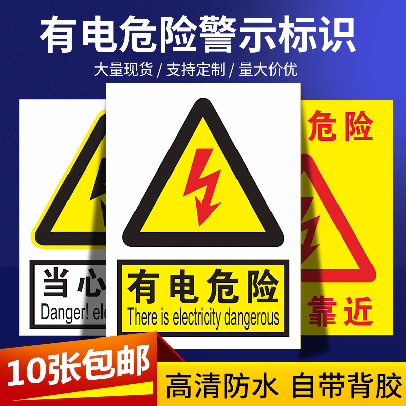 有电危险当心触电安全标识贴工厂车间电力机械设备安全用电标示提示警示牌配电箱配电重地止步高压危险标识牌