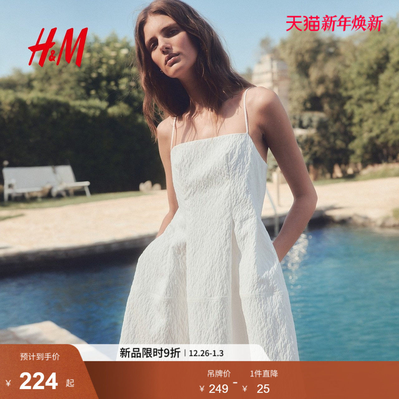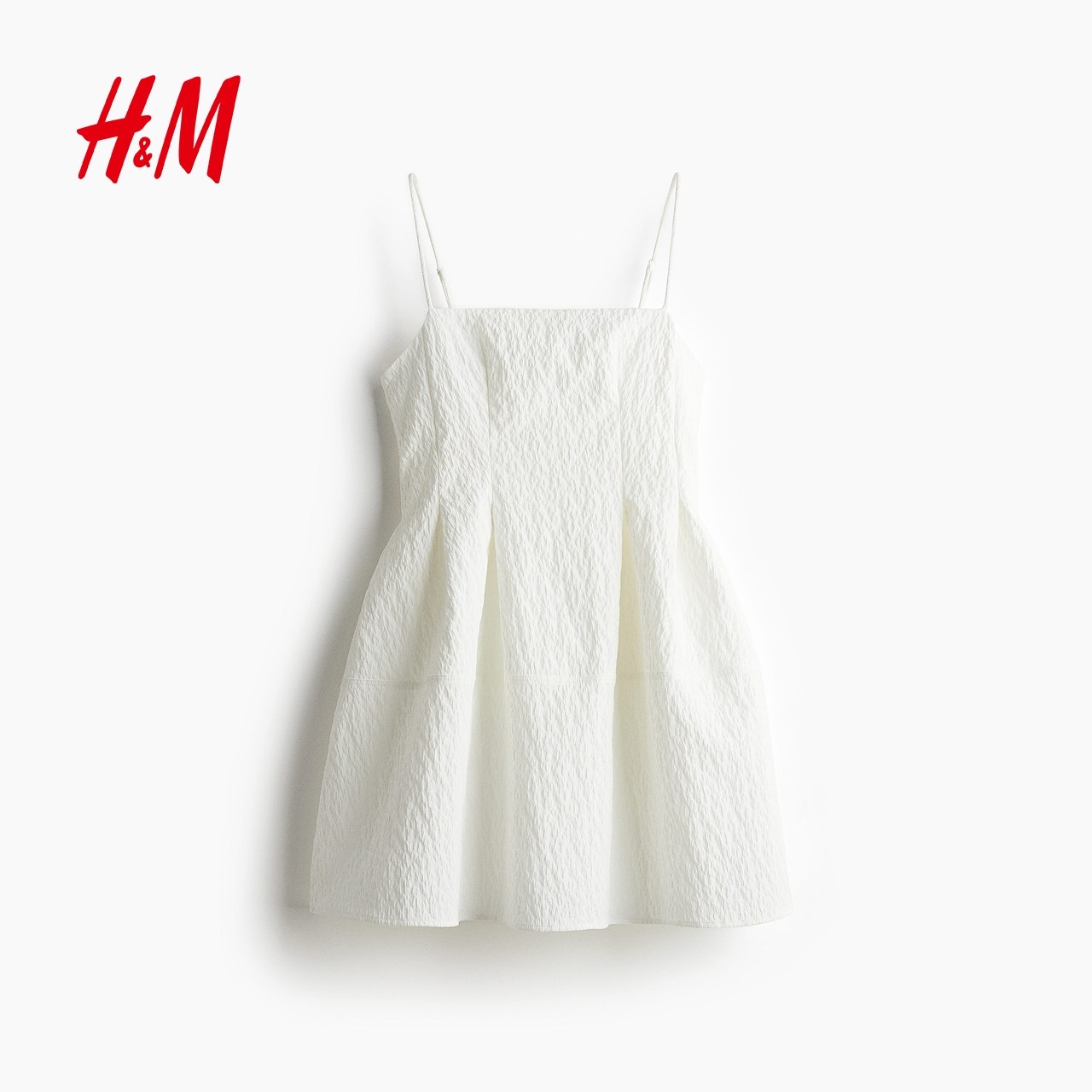 HM女装背心吊带连衣裙2025冬季新款简约纹理提花梭织短裙1295087