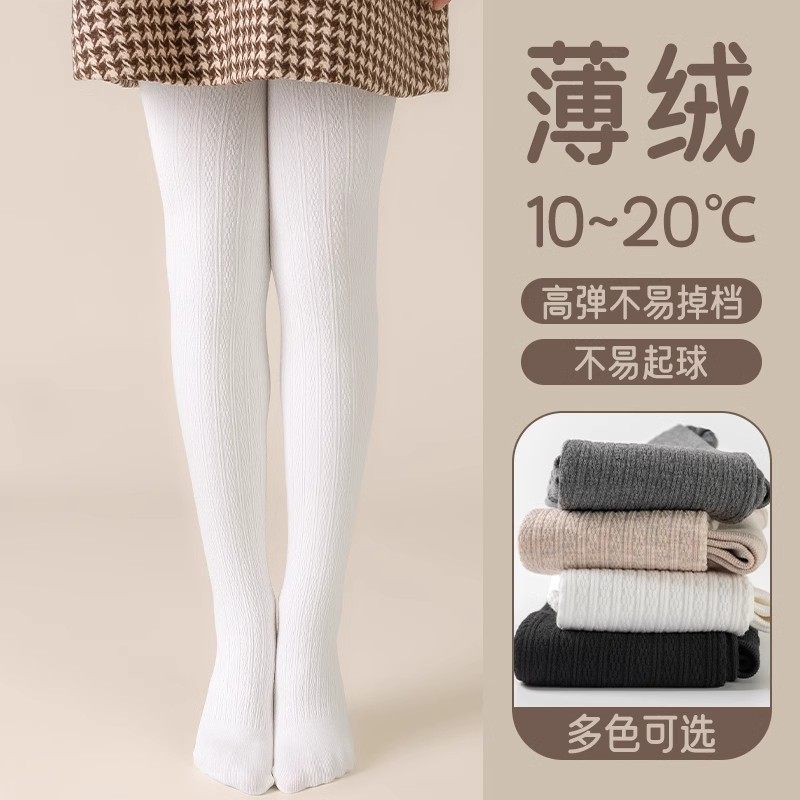 女童打底裤冬季加绒加厚儿童连裤袜宝宝连体袜白色秋冬款薄绒灰色