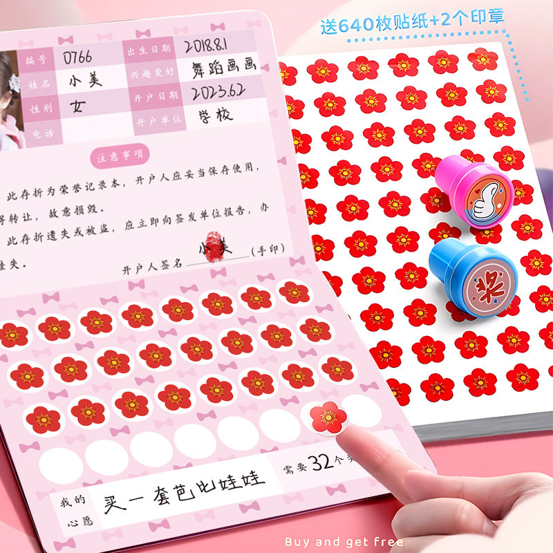 心愿积分存折奖励孩子的卡小学生奖励卡心愿卡贴纸收集本儿童印章幼儿园学习小红花积分打卡记录本家庭激励