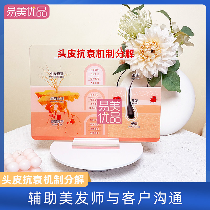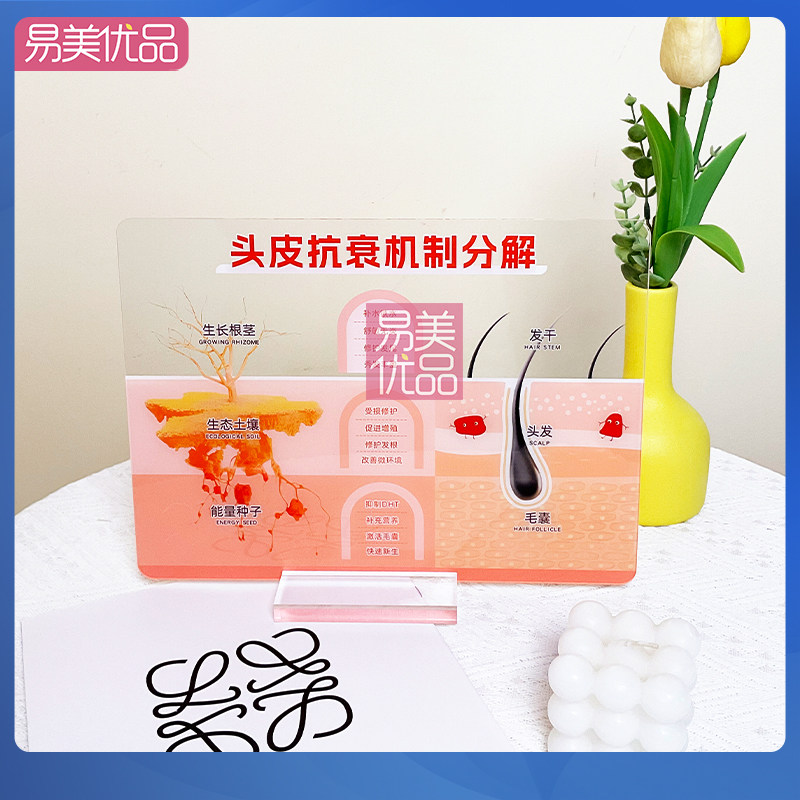 高透UV双面印刷亚克力摆台头发抗衰机制分解美发沙龙医患沟通护发