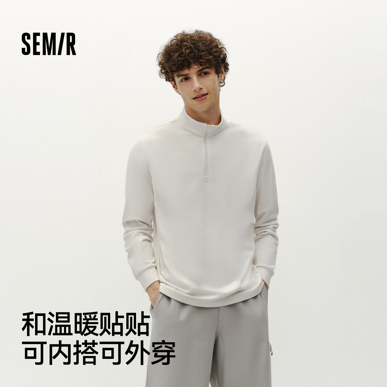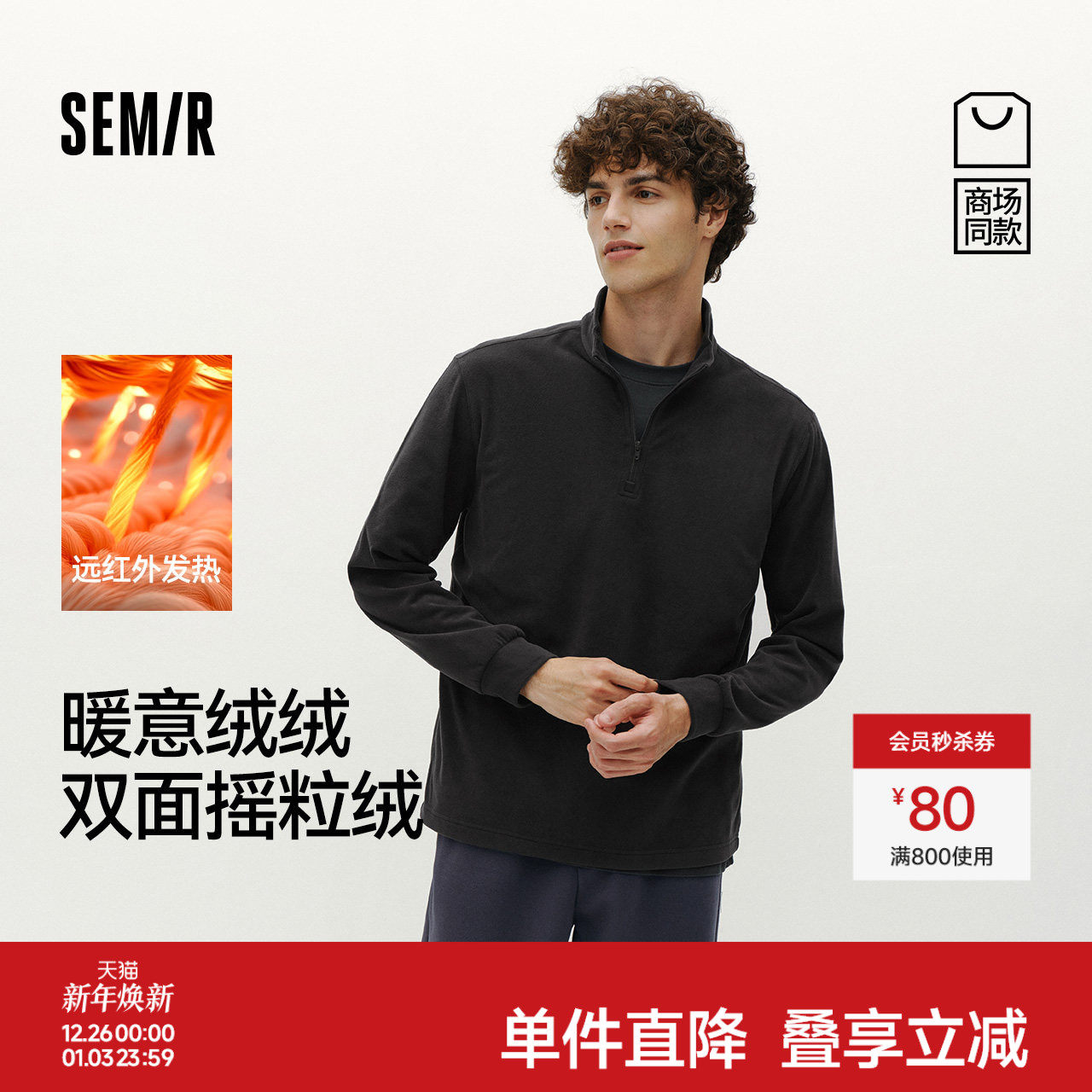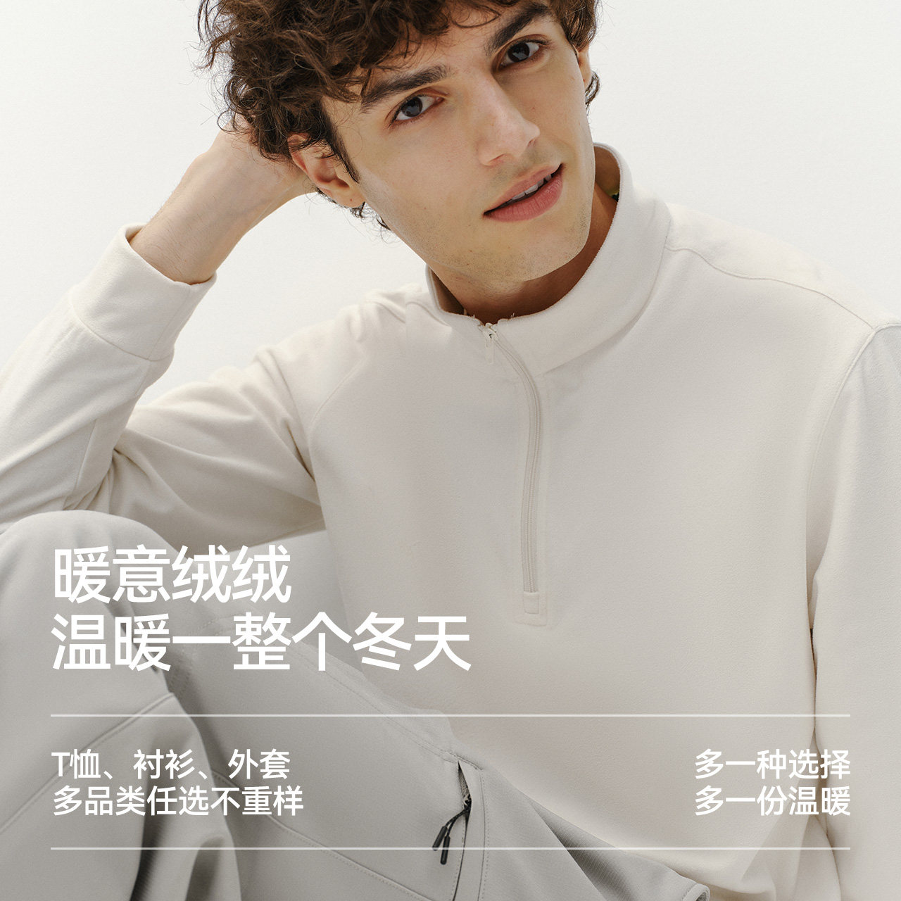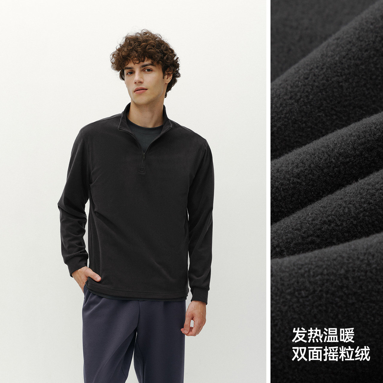 商场同款|森马长袖T恤男冬发热摇粒绒内胆2025新款半开襟立领上衣