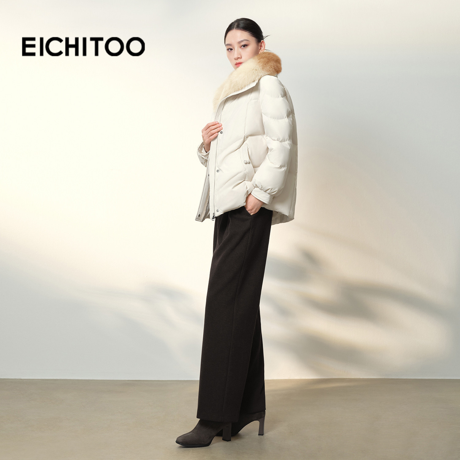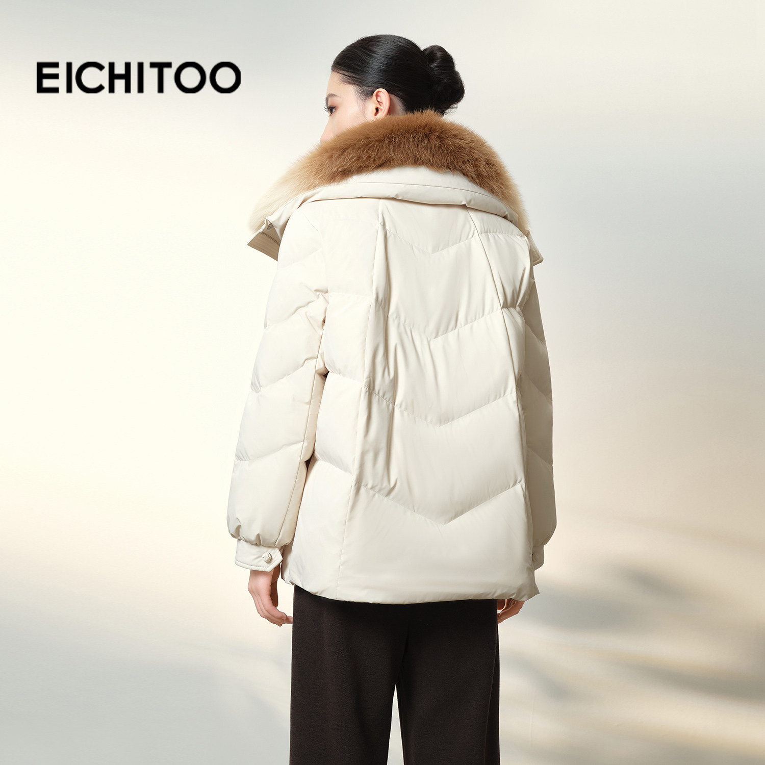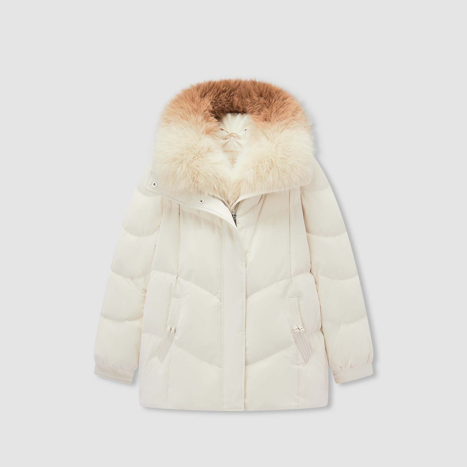 爱居兔温柔米色时尚羽绒服2025年冬季新款女保暖大毛领舒适冬外套