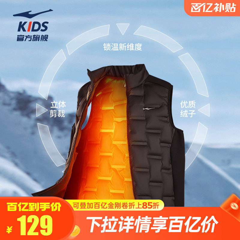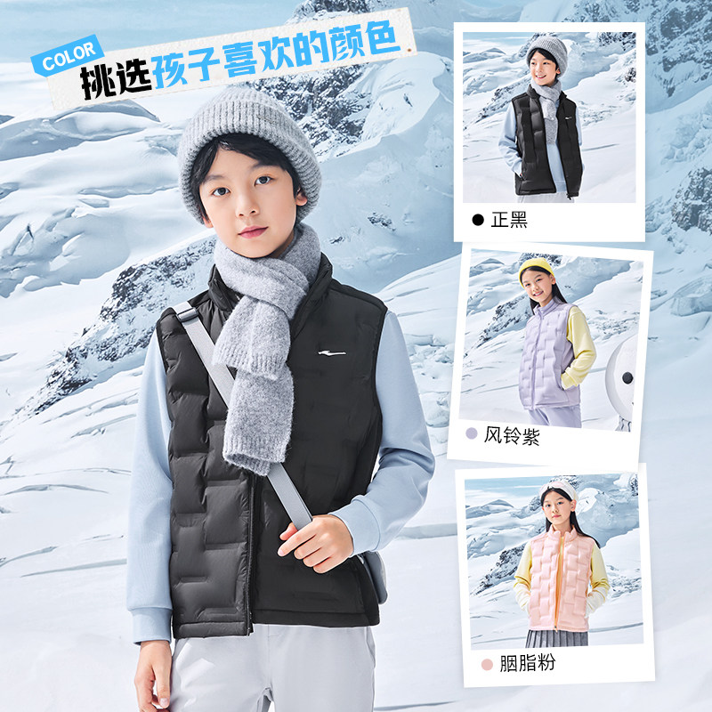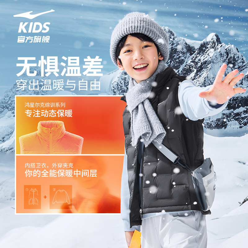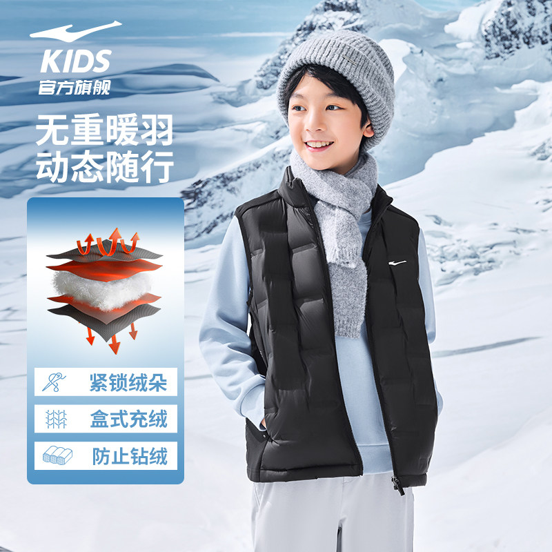 鸿星尔克童装儿童羽绒马甲秋冬季新款轻薄背心男童立领羽绒服女童