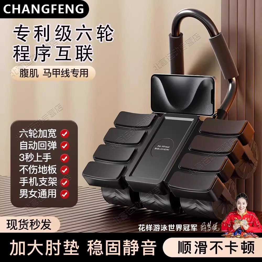 四轮健腹轮自动回弹2025新款家用瘦肚子卷练腹肌神器运动健身器材