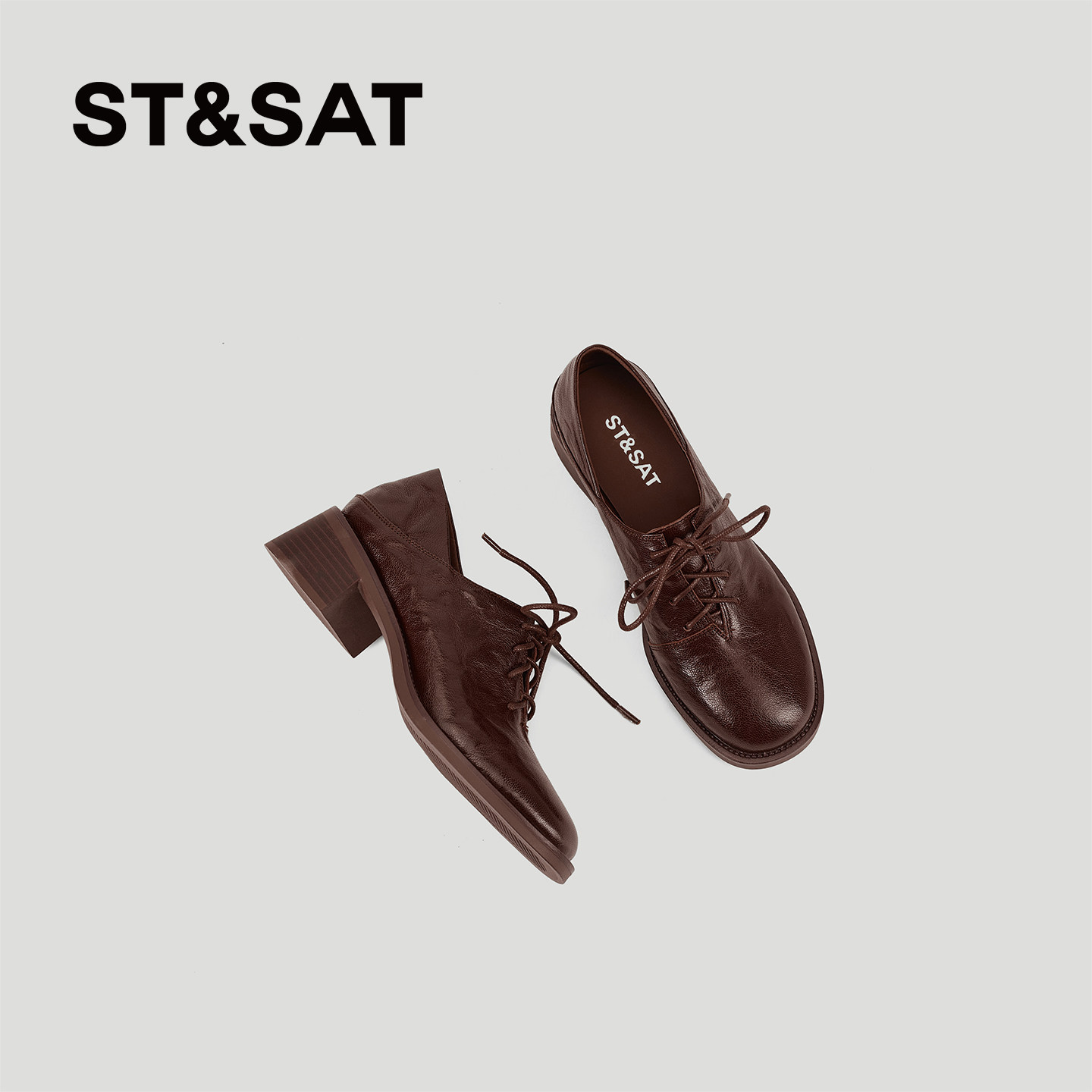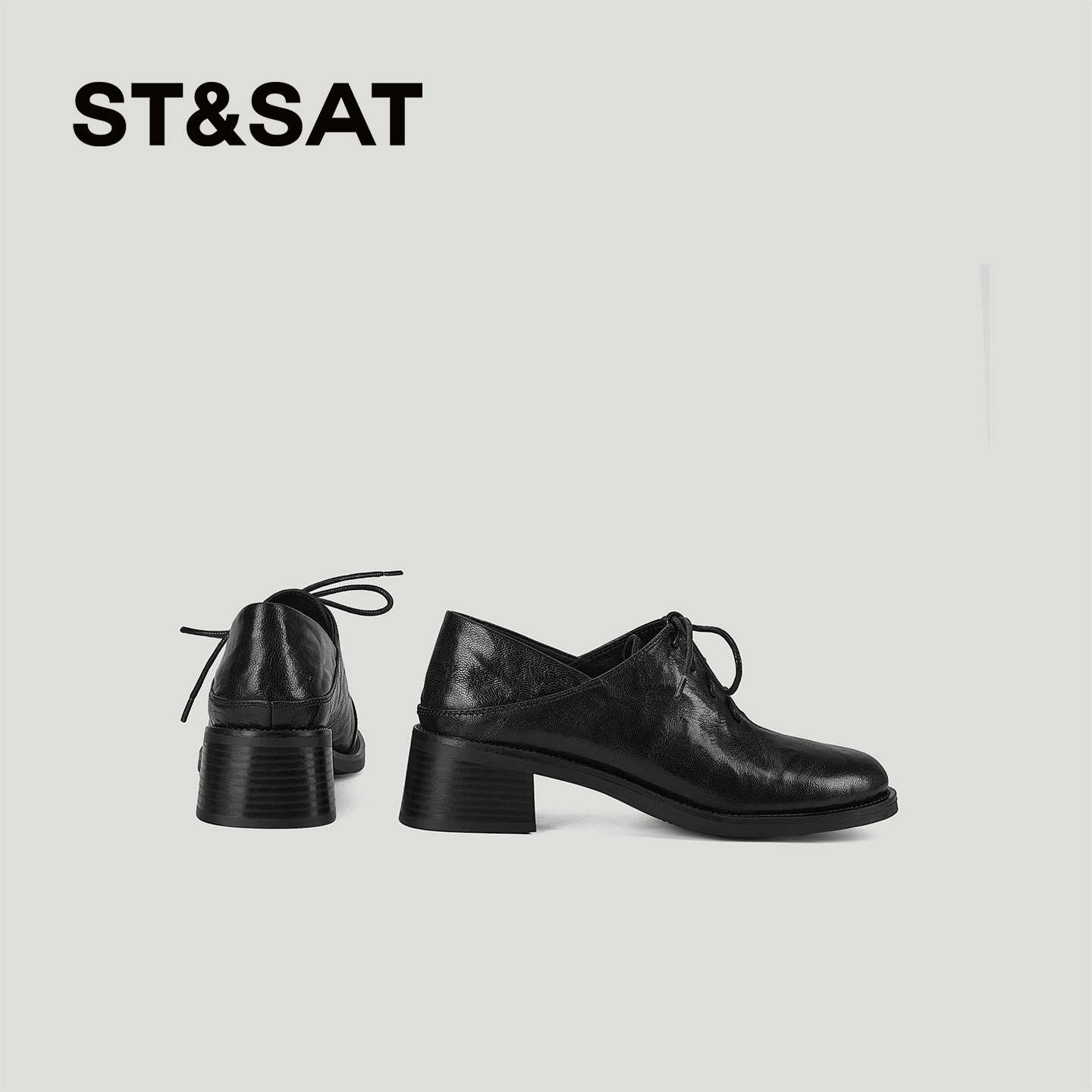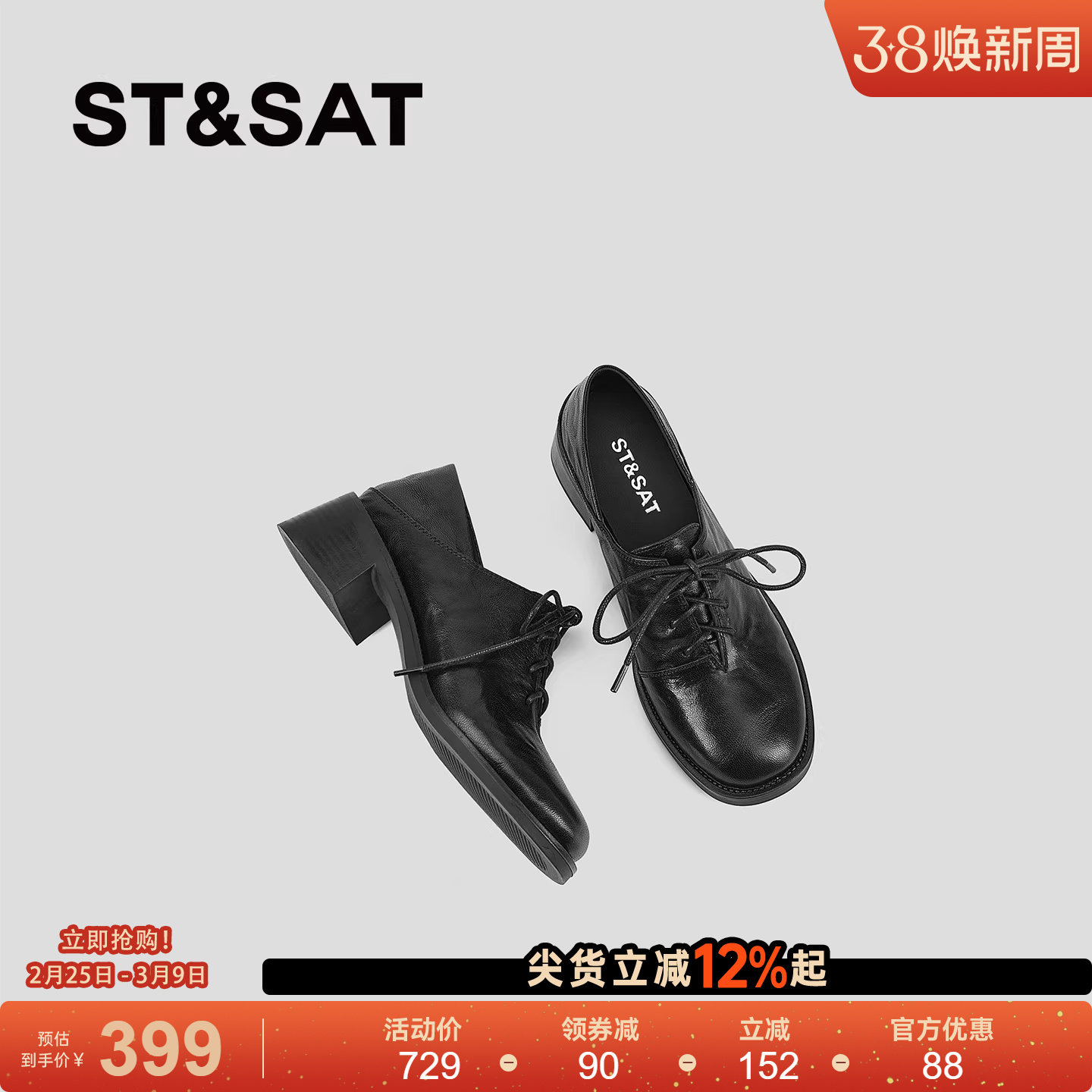 星期六英伦风乐福鞋女2026春新款圆头粗跟系带舒适软底百搭德比鞋