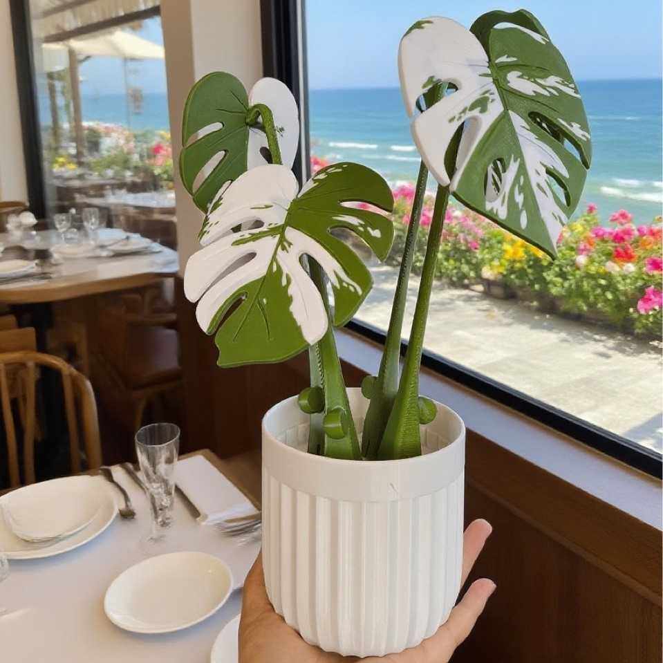 绿韵仿真植物白边龟背竹 龟背叶家居装饰小盆栽 人造绿植室内盆景