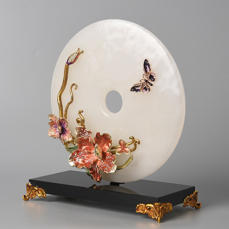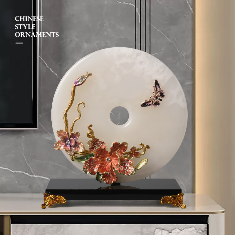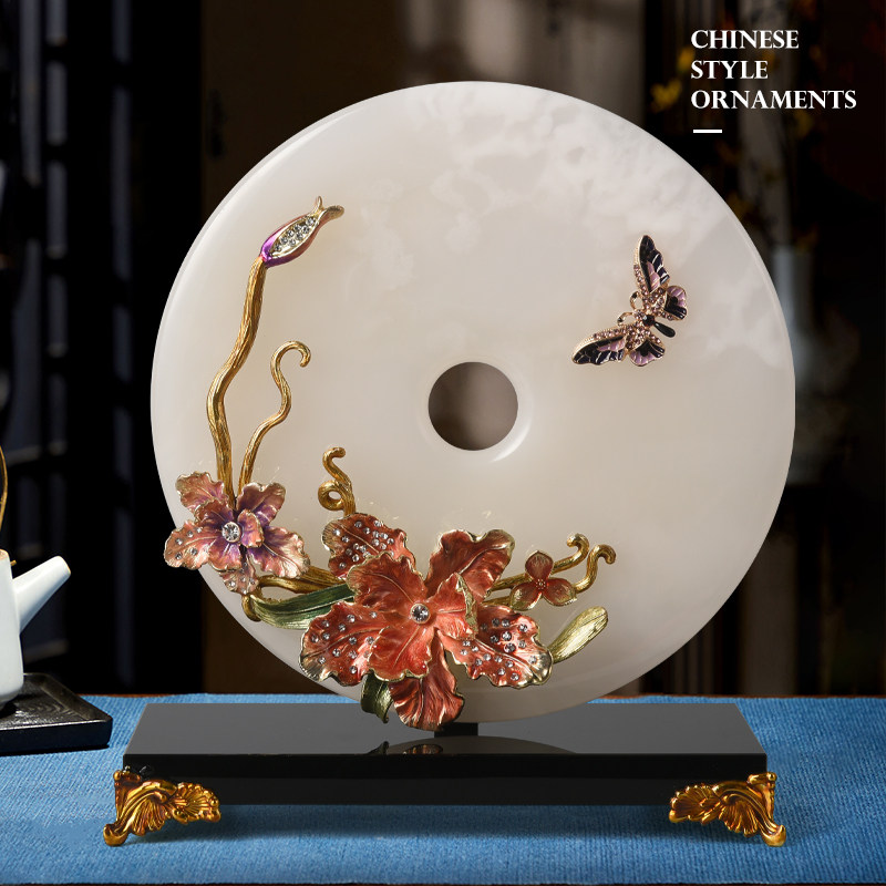 珐琅彩玉石平安扣摆件客厅酒柜电视柜玄关装饰品乔迁开业新居礼品