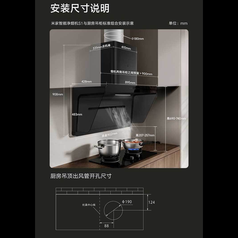 米家小米智能侧吸净烟机S1定时灶烟灶套装厨房油烟机