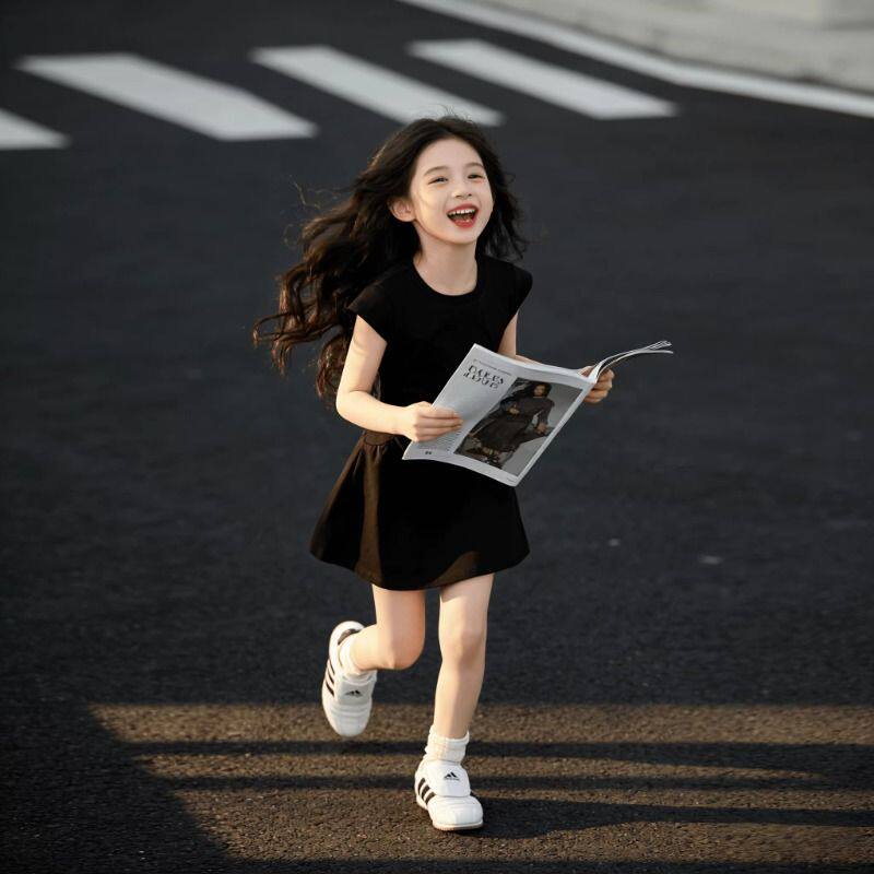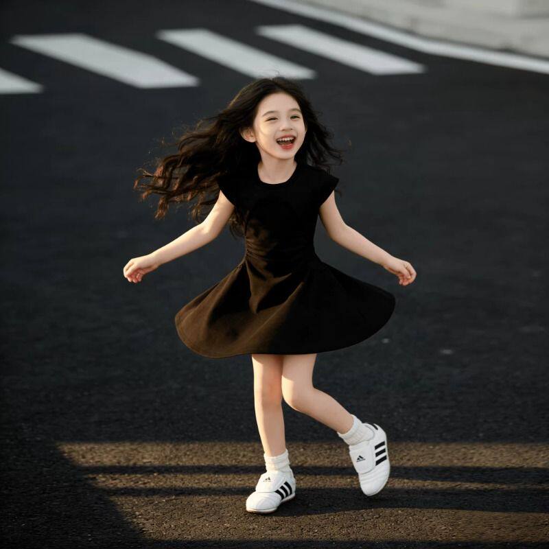 儿童女童连衣裙女宝宝法式气质夏季新款高级小黑裙洋气收腰A字裙