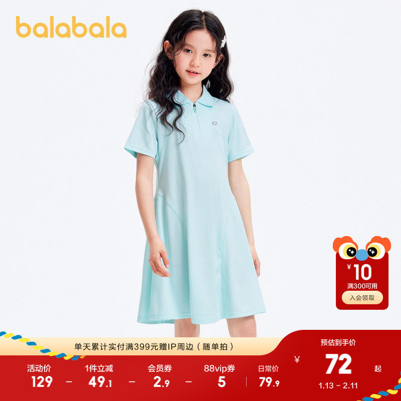 巴拉巴拉童装女童连衣裙夏装大童运动风速干修身裙子简约运动裙潮