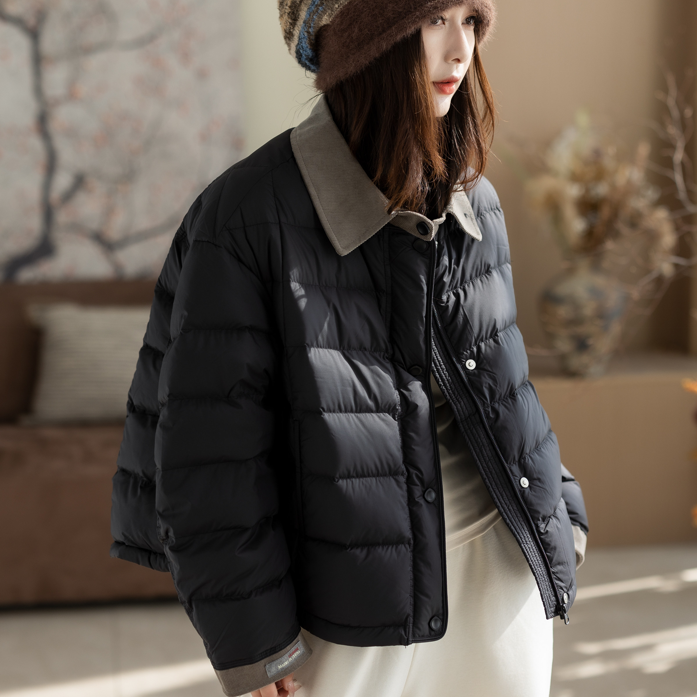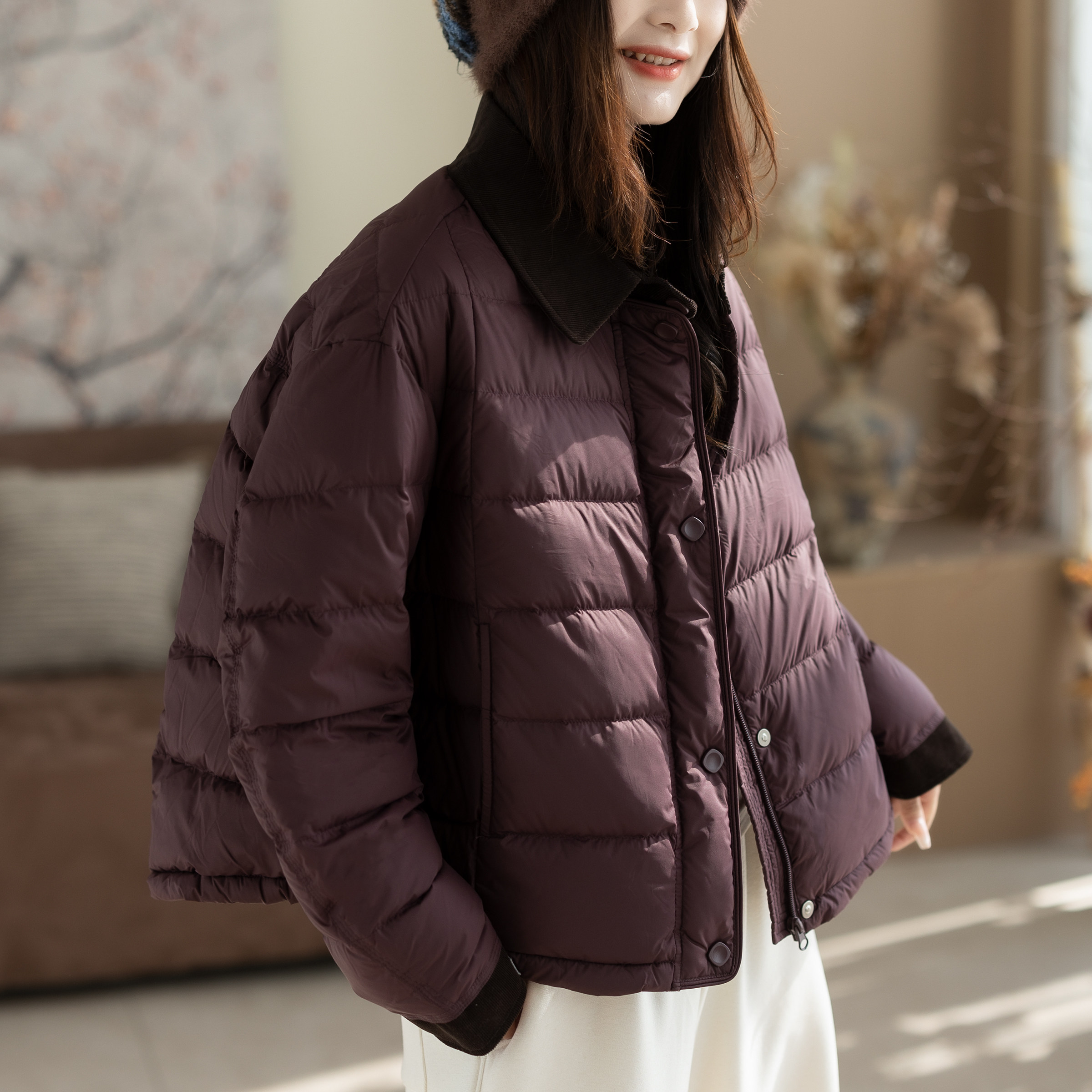 2025新款冬装90白鸭绒文艺宽松复古简约百搭气质女装上衣羽绒服女