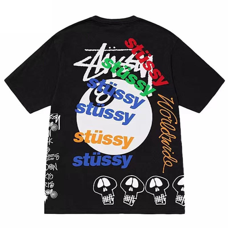 潮牌斯图西Stu短袖t恤黑八8球冲浪经典骰子重磅高版本纯棉夏亲子