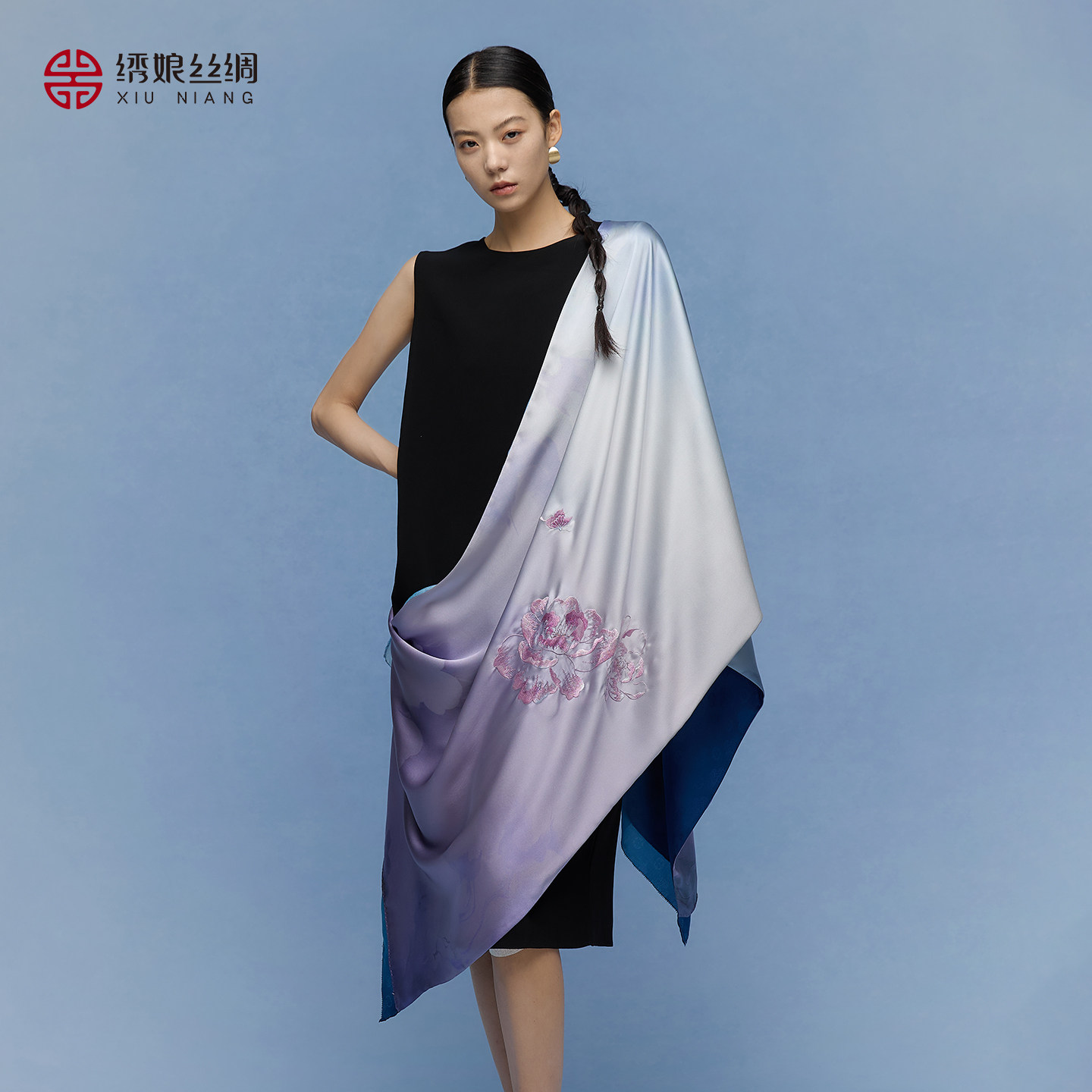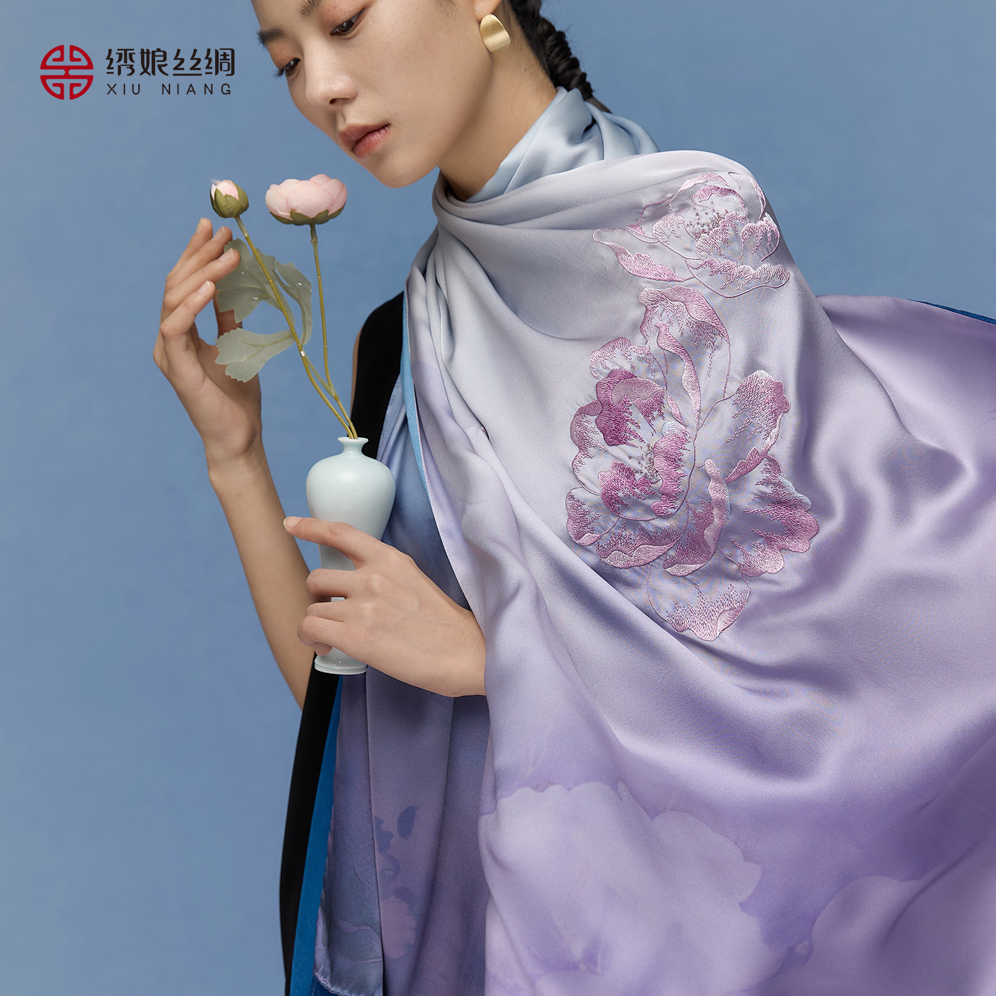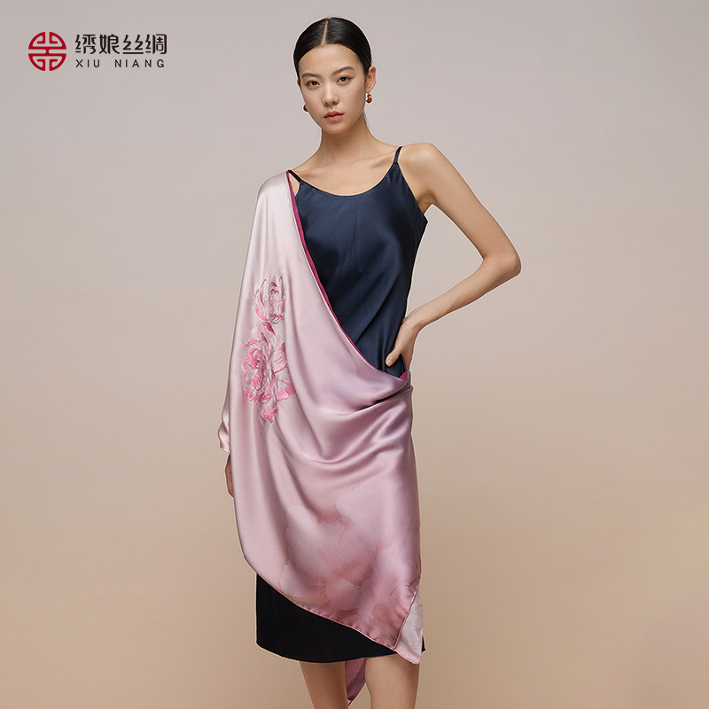绣娘丝绸真丝新款丝巾100%桑蚕丝高级披肩女外搭手工刺绣搭配礼盒