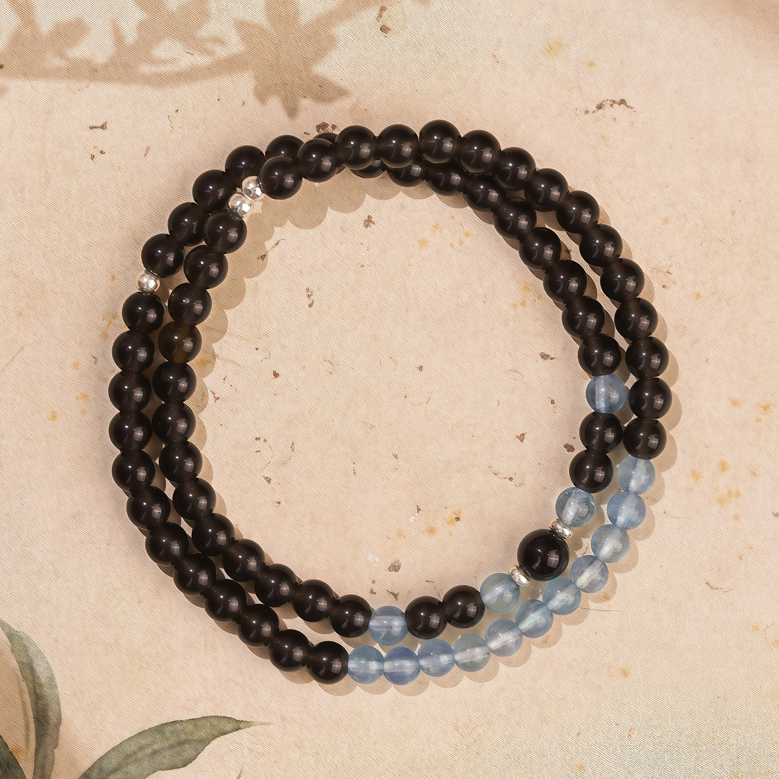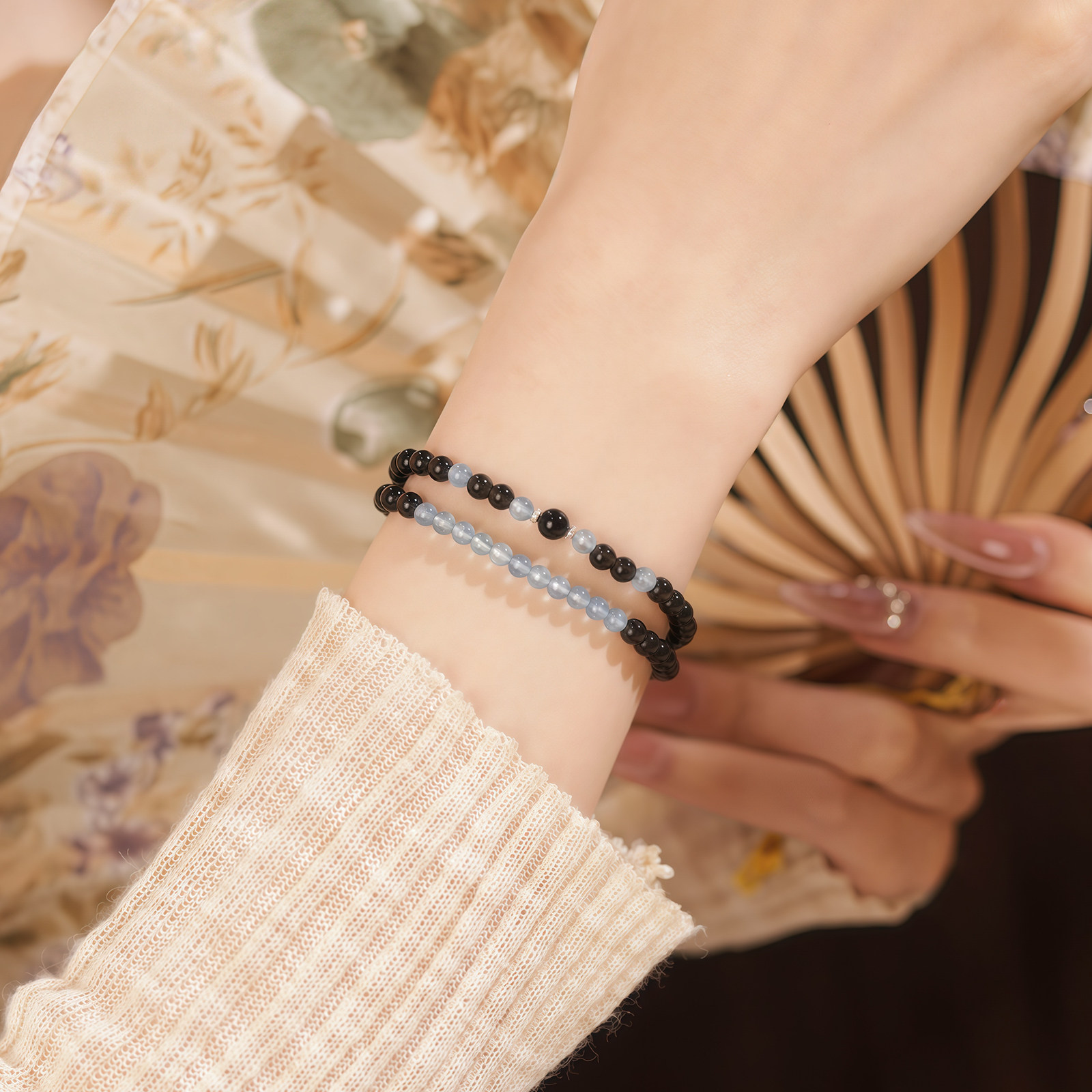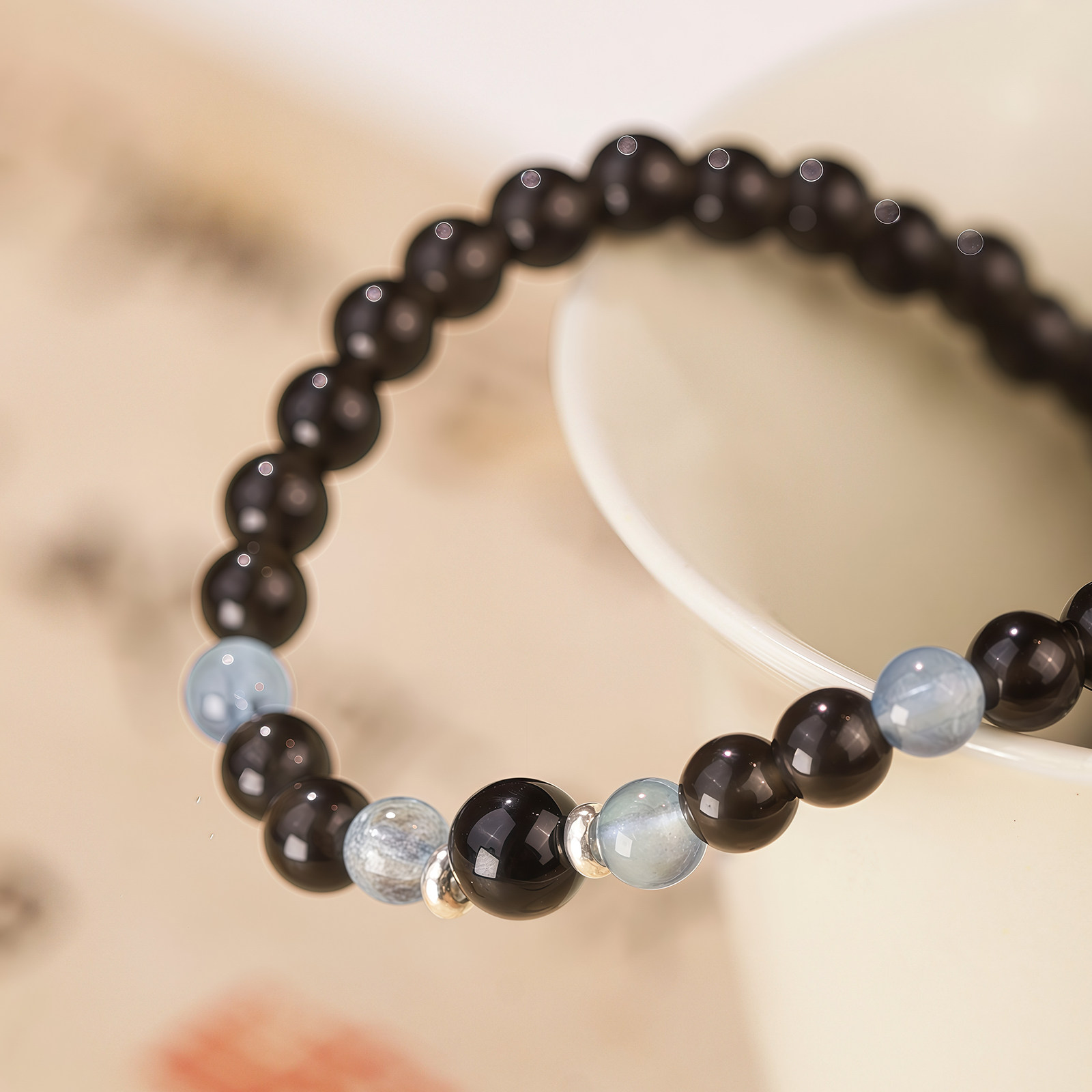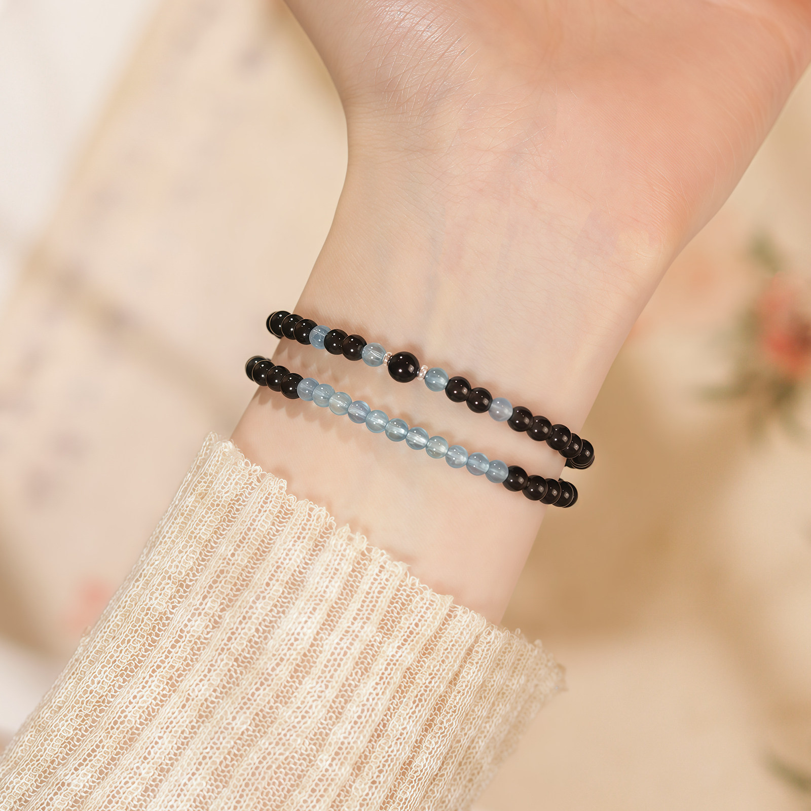 碧穹天然黑曜石海蓝宝冷门手串女款串珠手链小众水晶五行补水纯银
