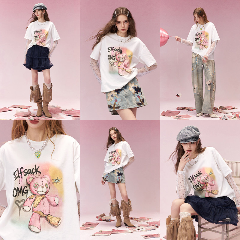 凉感T森马短袖T恤女短款修身正肩收腰2025夏新款上衣百搭白色体恤