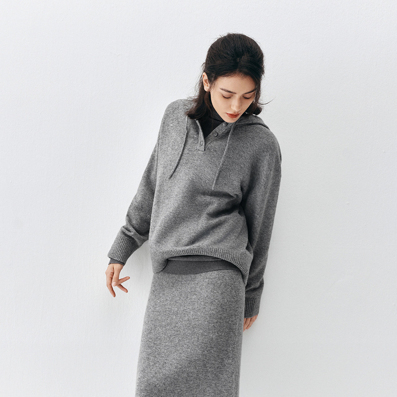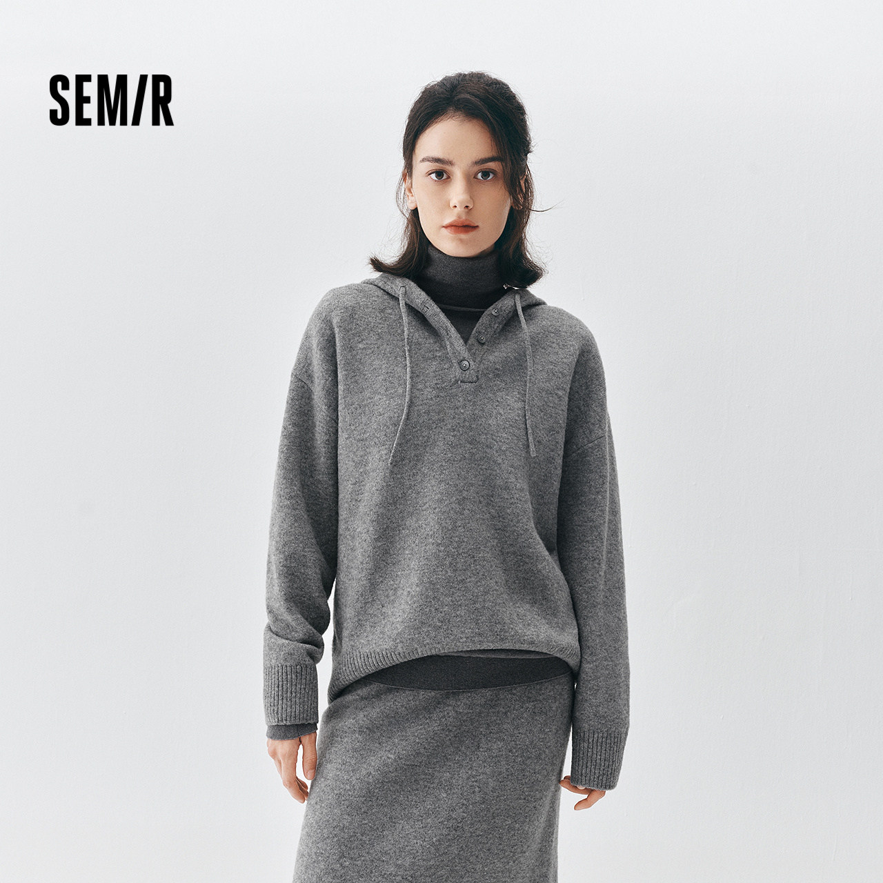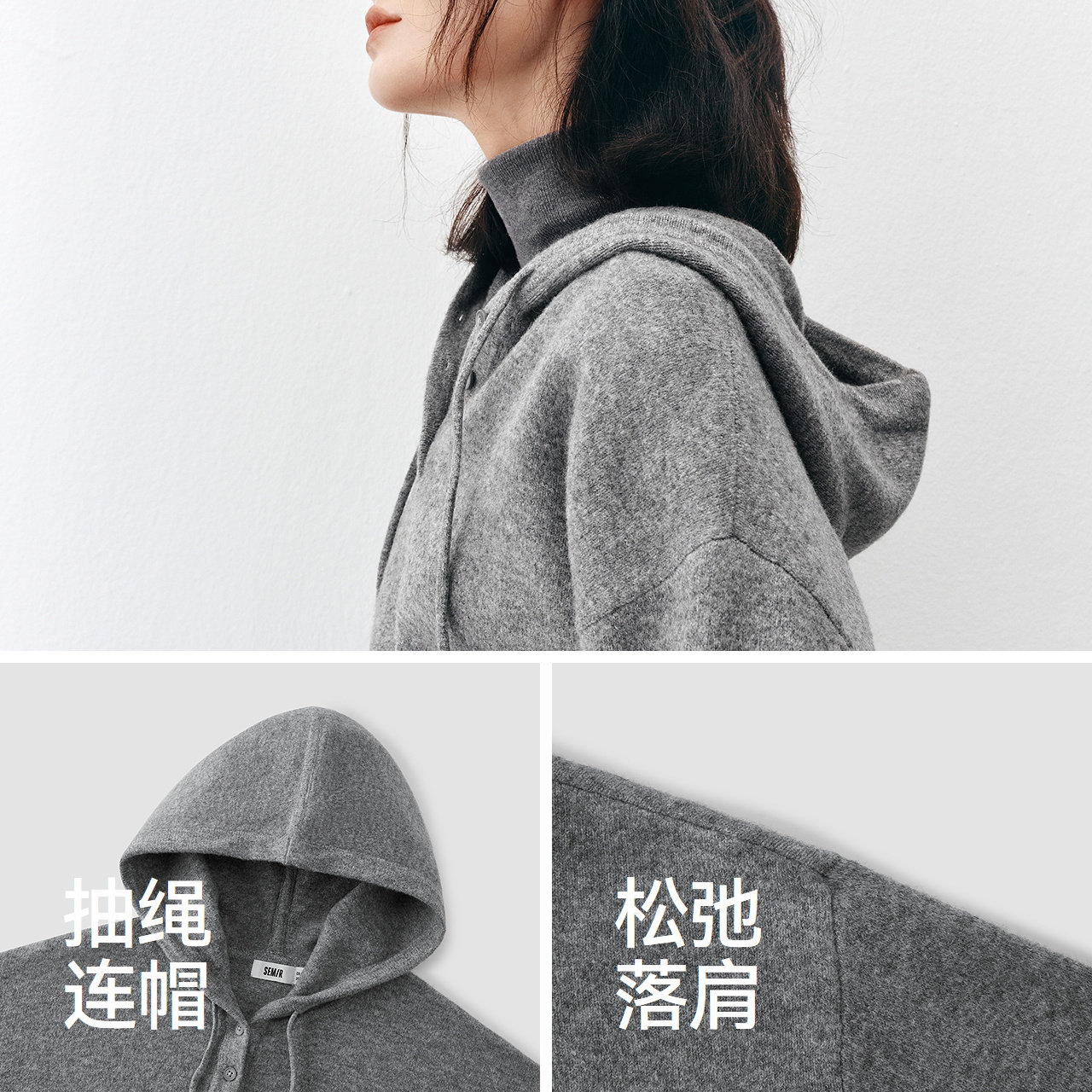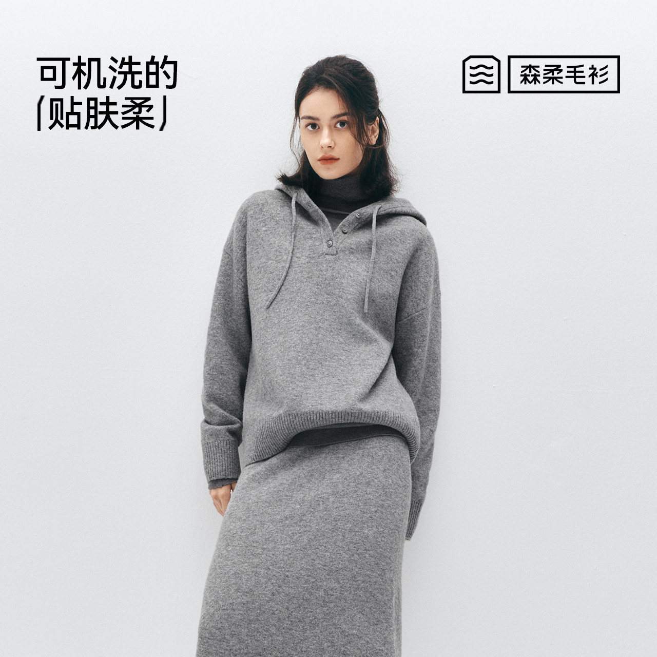 商场同款|森柔森马毛衣女冬季连帽卫衣外套2025新款简约百搭毛衫