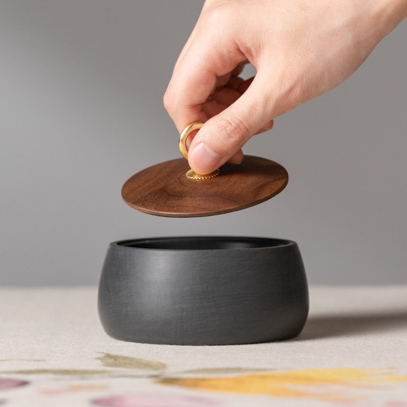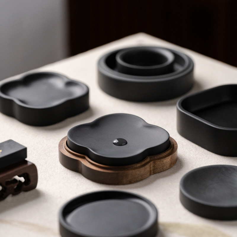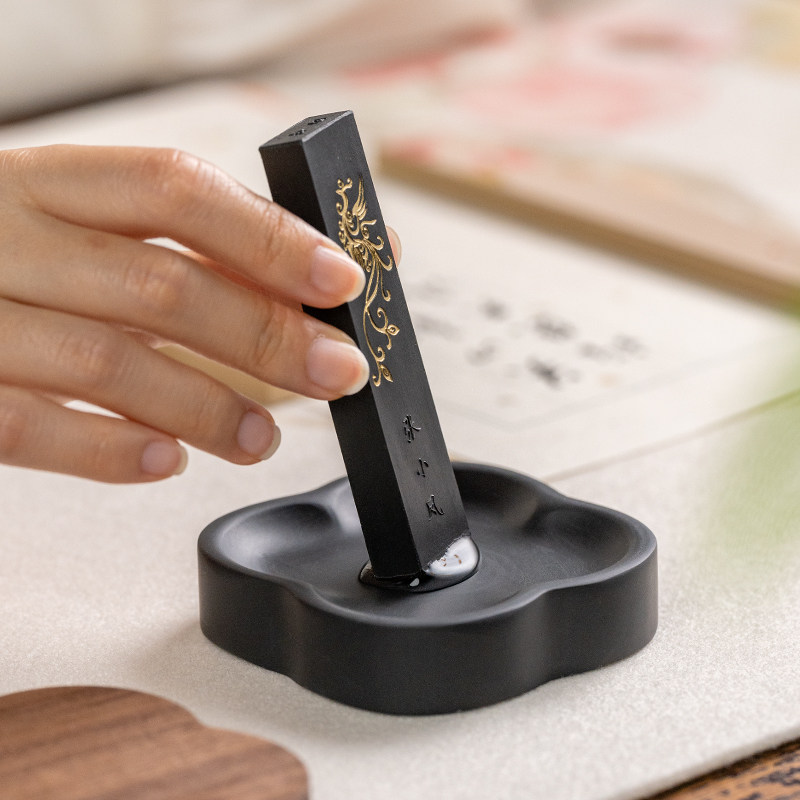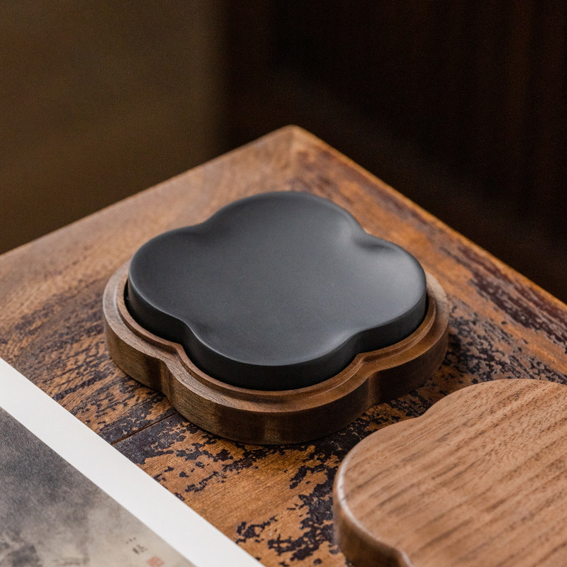 张小凤天然歙砚文房四宝胡桃木墨盒笔洗带盖火锅砚台墨碟墨池可研墨毛笔书法专用墨砚安徽高档墨条墨汁
